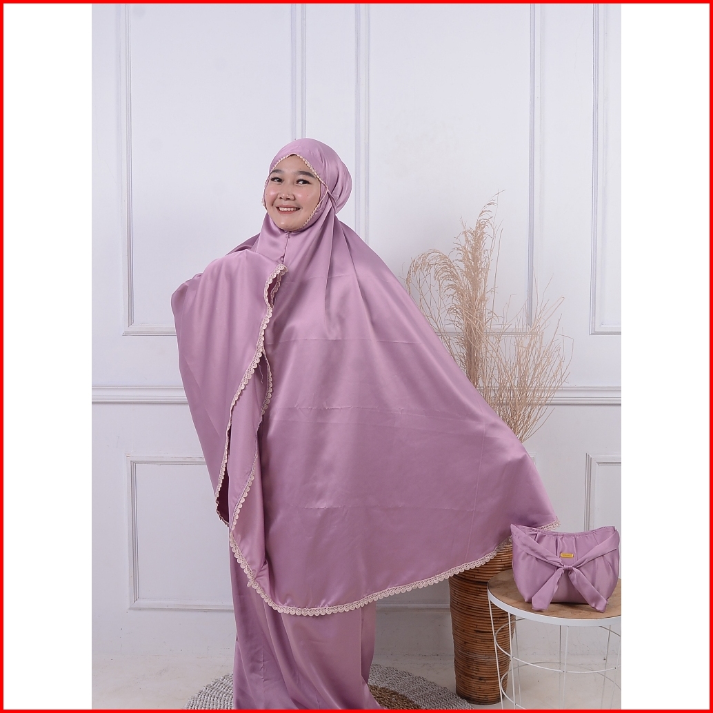 Mukena Dewasa Silky Velvet Polos 2in1 Renda 2cm Mukena Simple Cantik Mewah Tas Pita