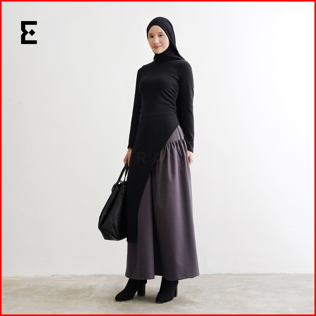 Eraya - Meydi Slit Dress Long Dress Slit Korean Basic Dress - Ecd016