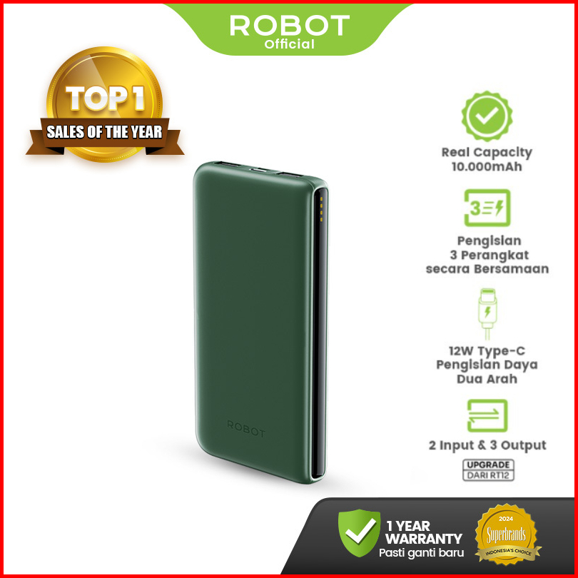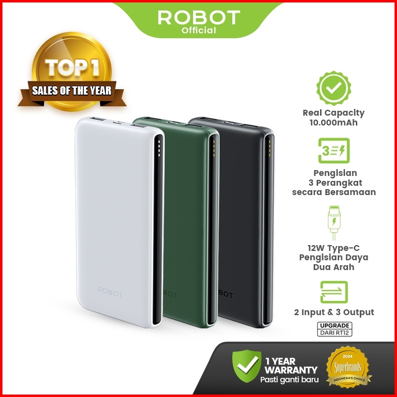 Robot Rt12 Upgraded Powerbank 10000mah Fast Charging 12w Slim Design 3 Output Usb Typec Dual Input Portable Charger For