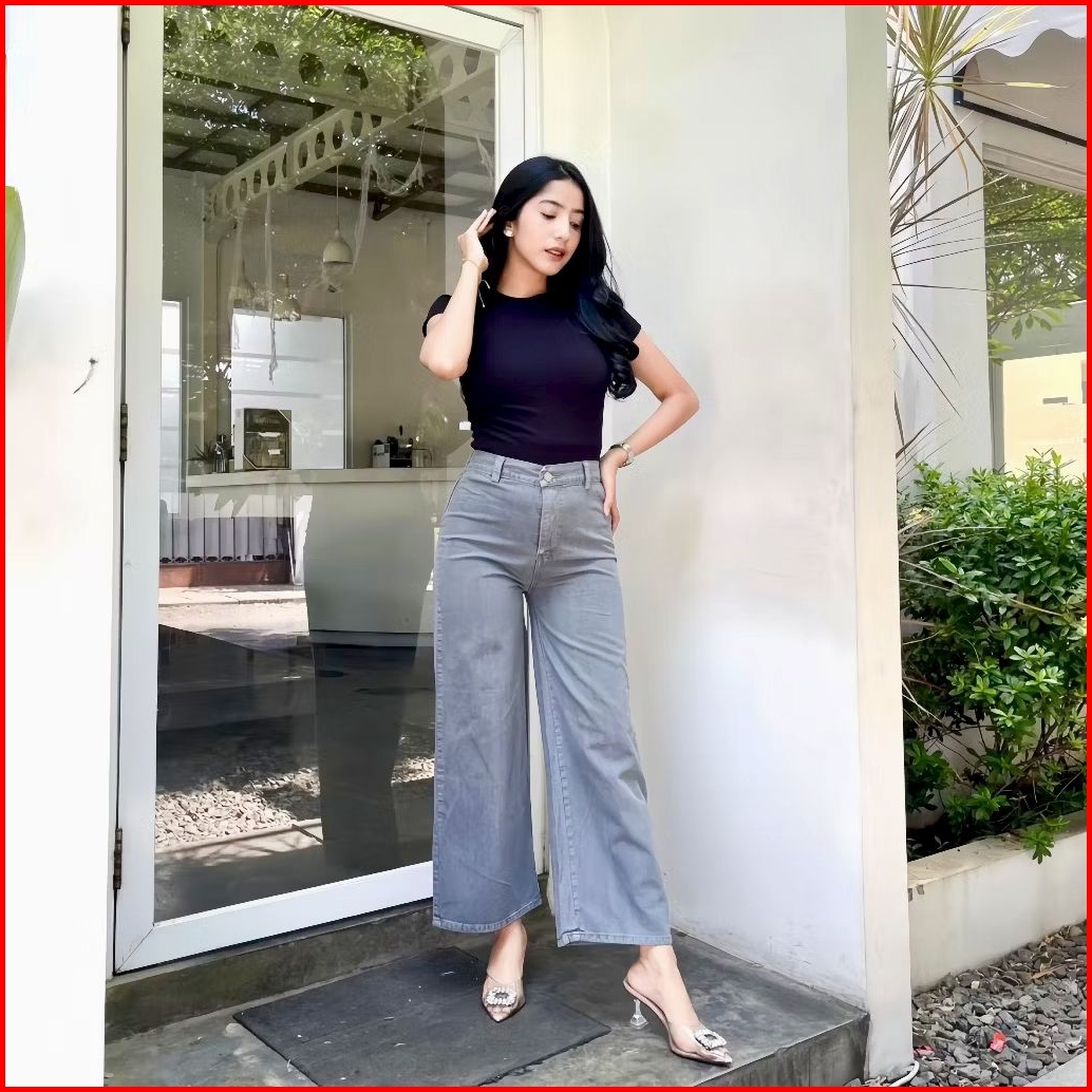 Best Seller Celana Kulot Jeans Wanita Highwaist Tebal Non Stretch Jin Anti Begah