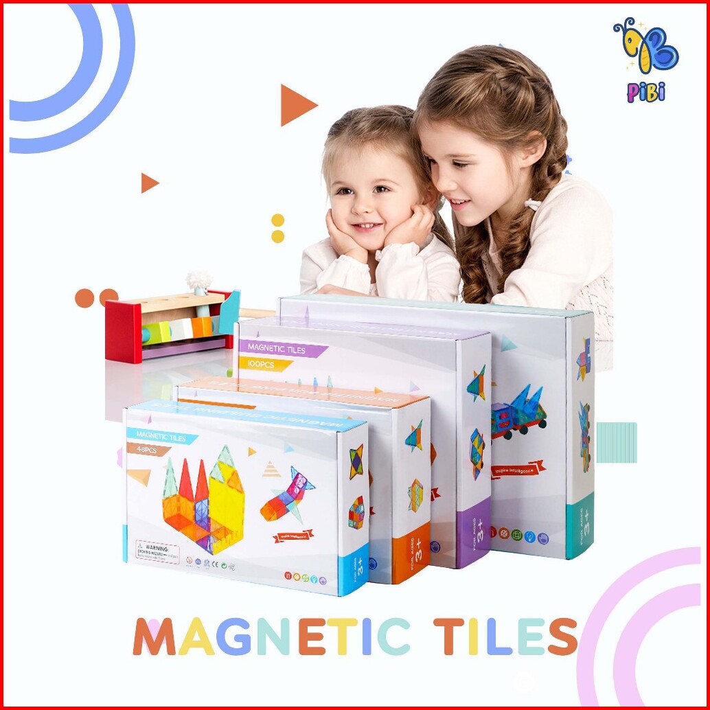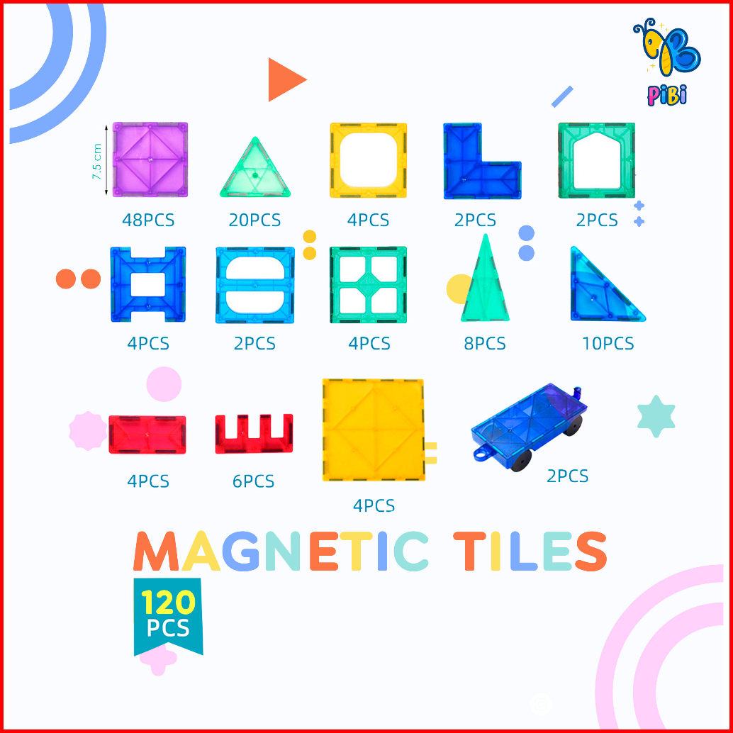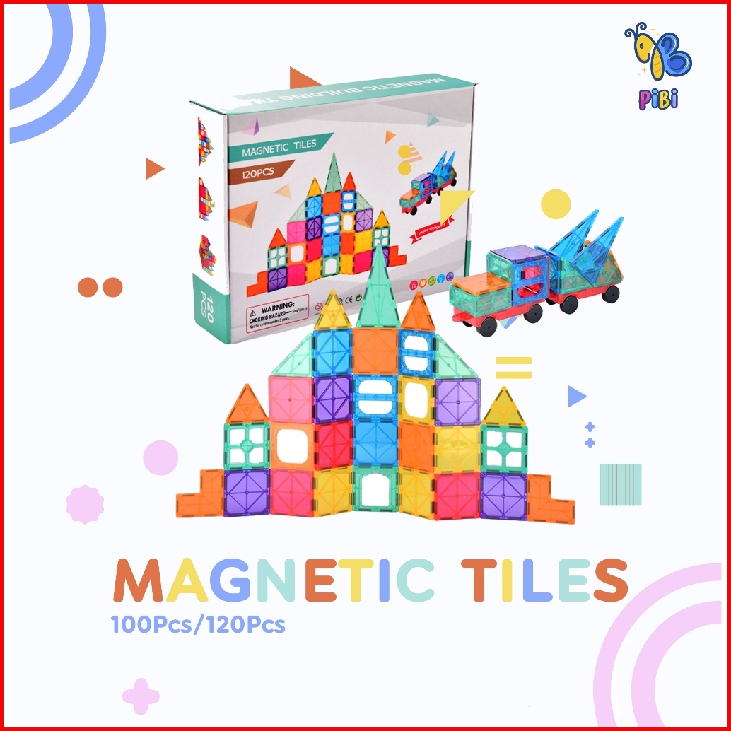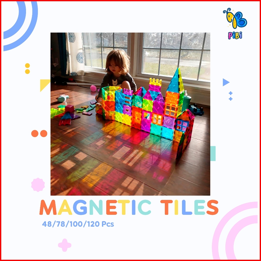 Pibi - Magnetic Tiles 100pcs 120pcs Mainan Edukasi Anak Marble Run Magnetic