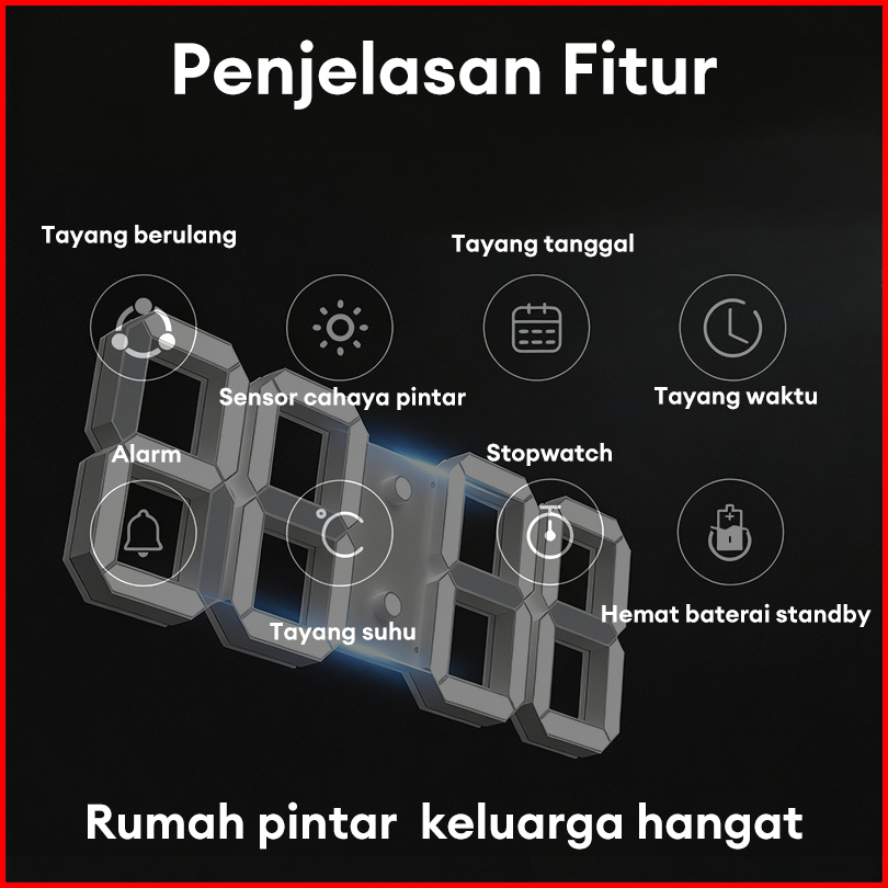 Jam Dinding Digital Led 3d Bentuk Angka Modern Minimalis Tampilan Waktu Suhu Tanggal