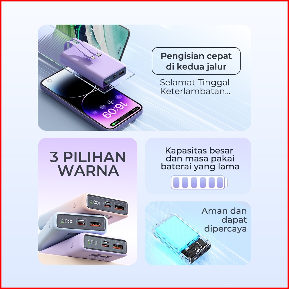 Skcbo Power Bank 20.000mah Dengan Pengisian Super Cepat 120w Dilengkapi Layar Kabel Bawaan Mendukung Pd Dua Arah Kompati