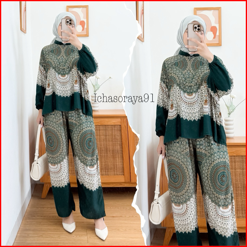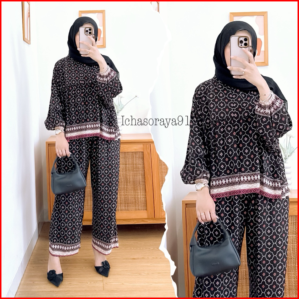 Maudy Setelan Batwing Bahan Rayon Motif Kekinian Set Wanita Terbaru