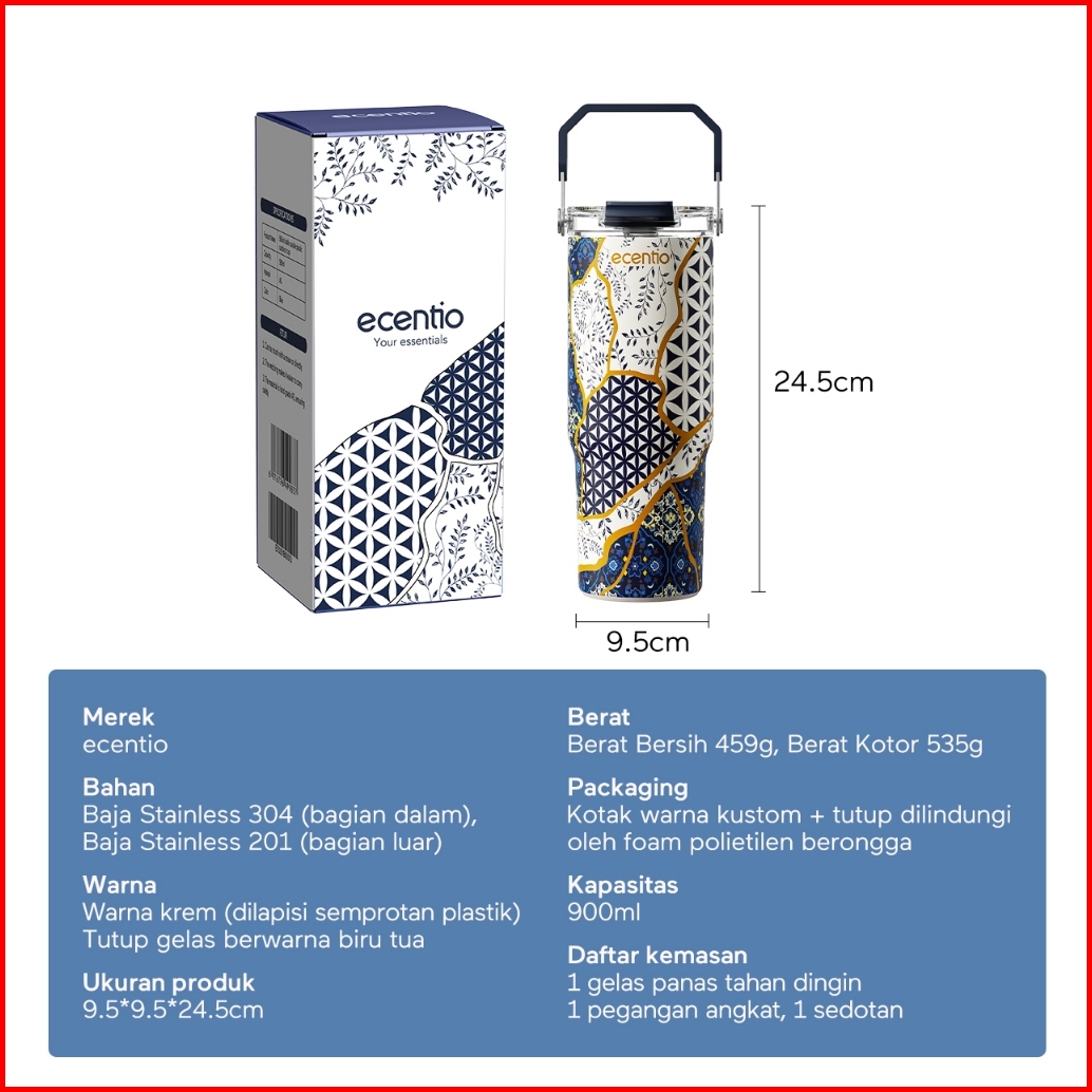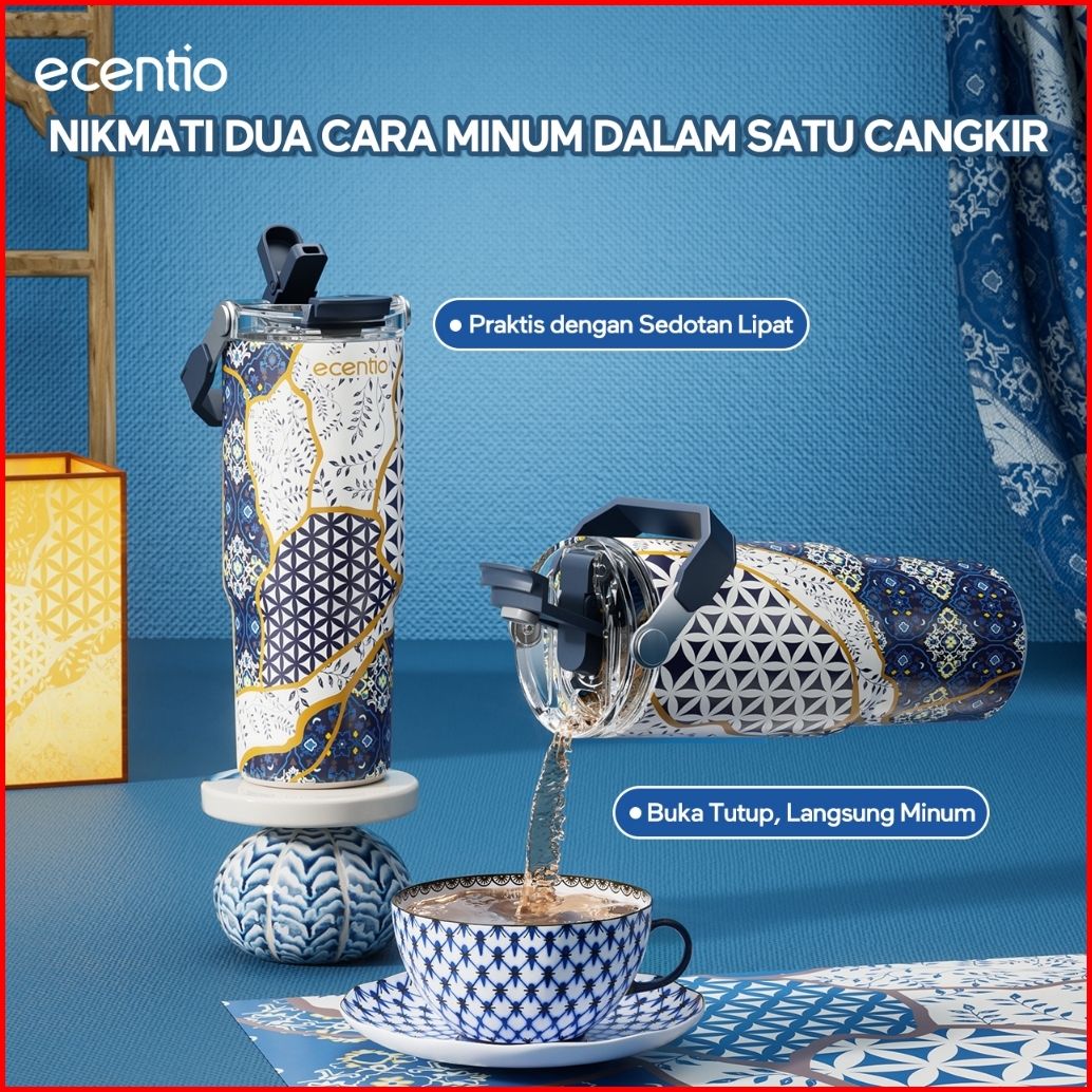 Ecentio Batik Tumblr Aesthetic 900ml Double Vacuum Insulated Tumbler Stainless Tahan Panas Dingin 24jam Tumbler Es Batu