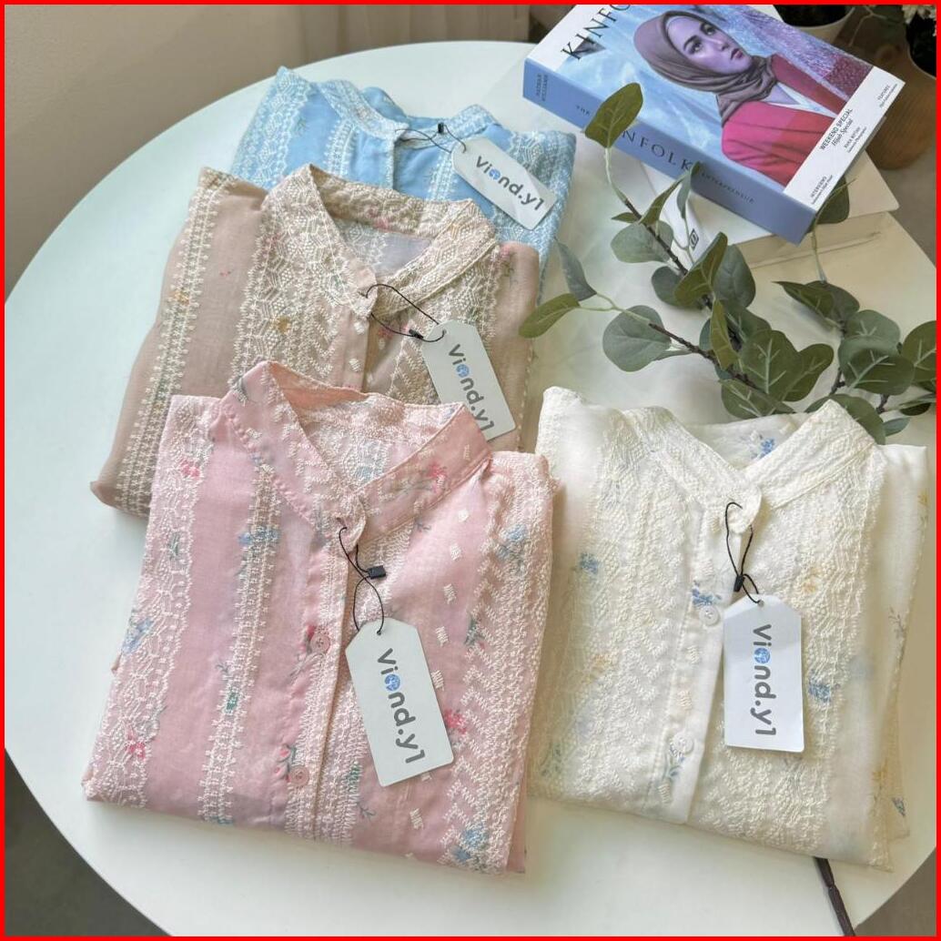Nolana Kemeja Korea Katun Bordir Bunga Shirt Wanita Lengan Panjang E.228