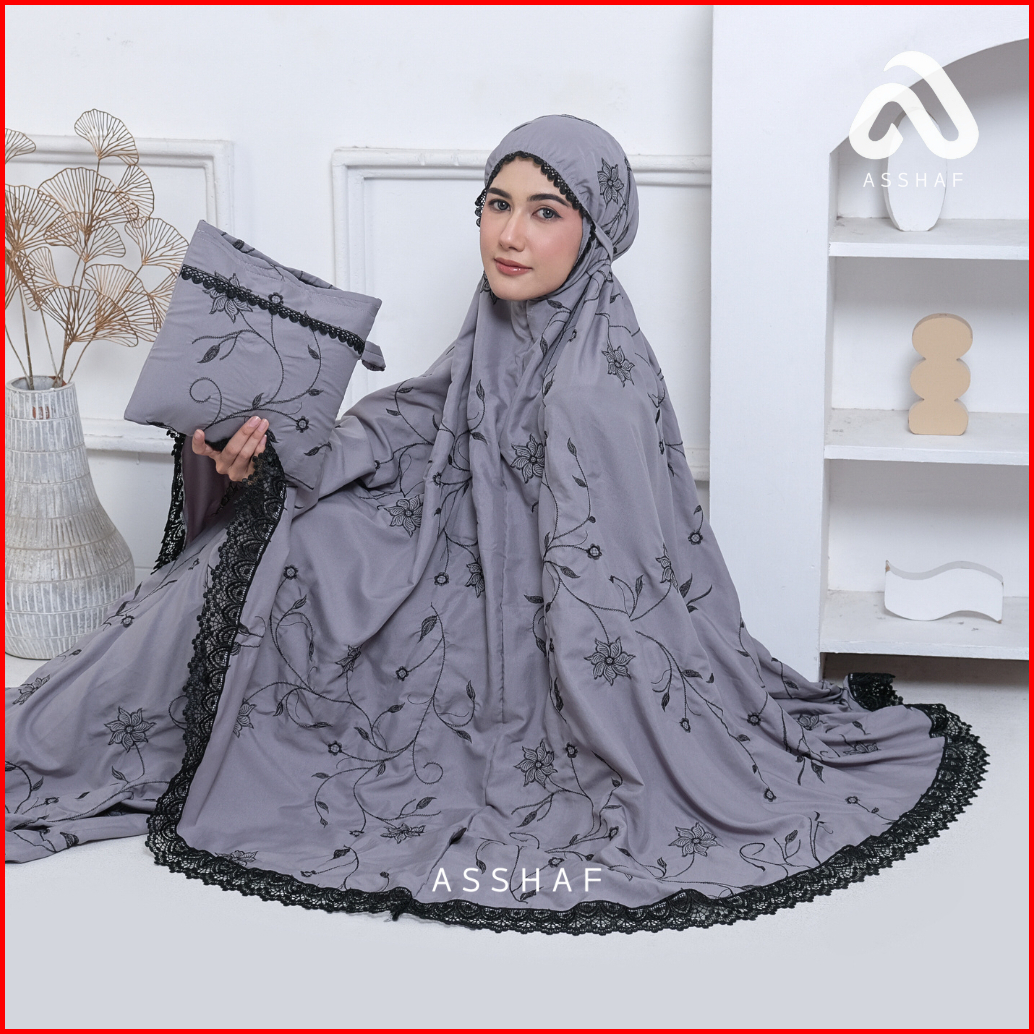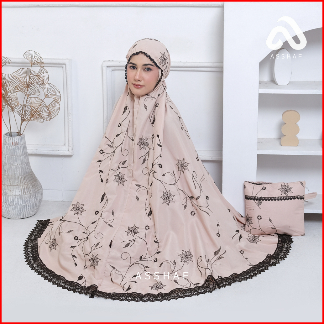 Asshaf - Mukena Dewasa Bordir Katun Bunga Allana Renda Mewah Mukenah