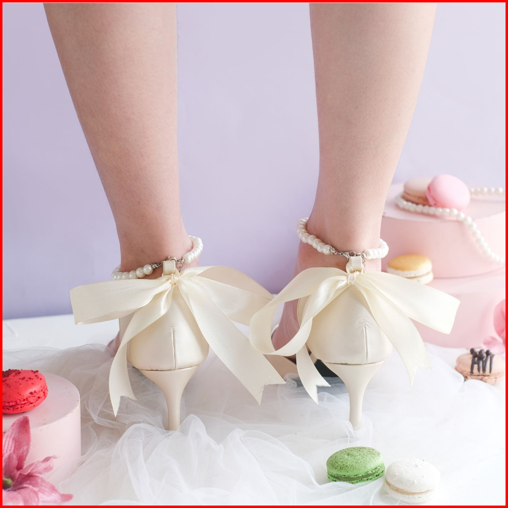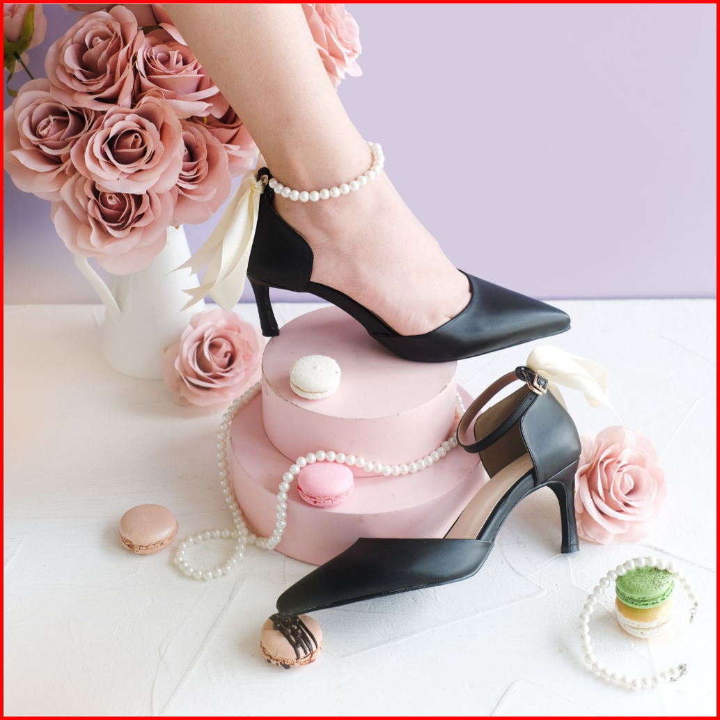 Macaron Heels Tangerine March X Odelyn Mackenzie X Nara Covered Heels 7cm Pearls Anklet Sepatu Hak Wanita Dreamy Heels P