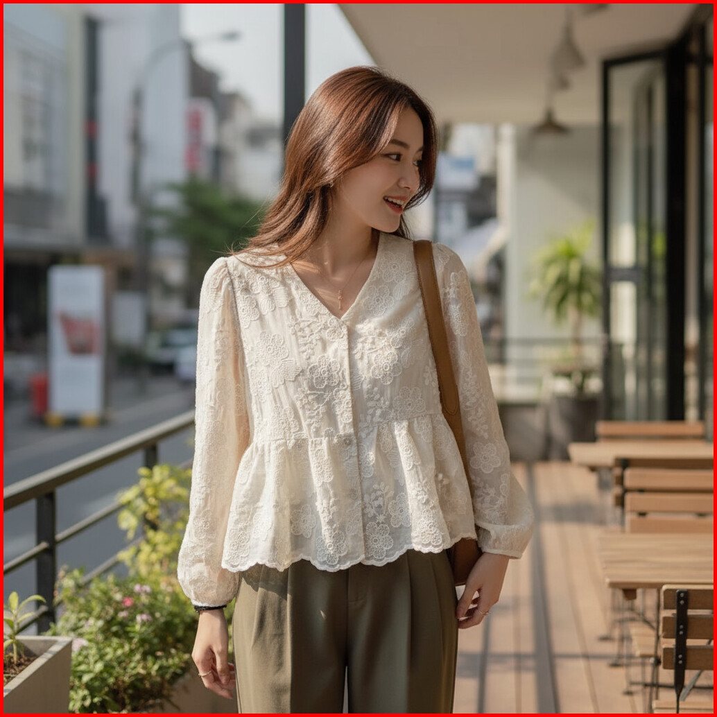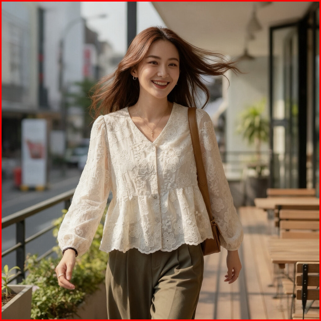 Atasan Model Baru Vneck Lengan Panjang Ala Longgar M698
