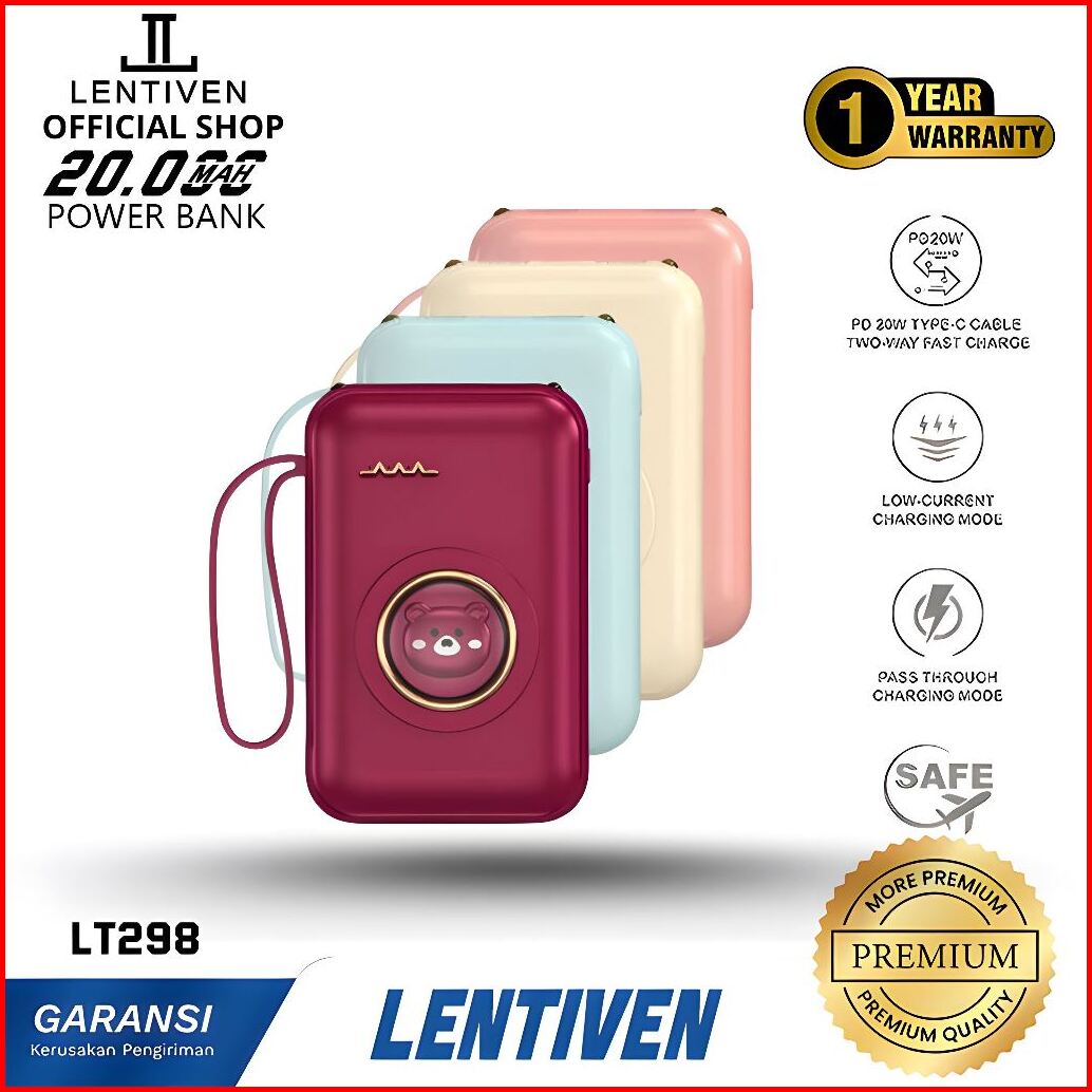 Lentiven Powerbank 20000mah Mini Fast Charging 4 Kabel Led Display Untuk Iphone Android Lt298 Garansi 1 Tahun