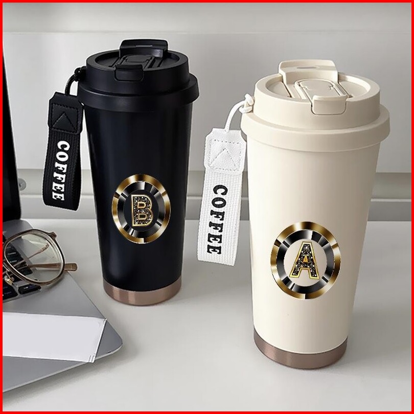 Tumbler Cup 500 Ml Simple A B C D E F G H I J Termos Custom Kopi Stainless Steel Dengan Sedotan Termos Kopi Yang Elegan