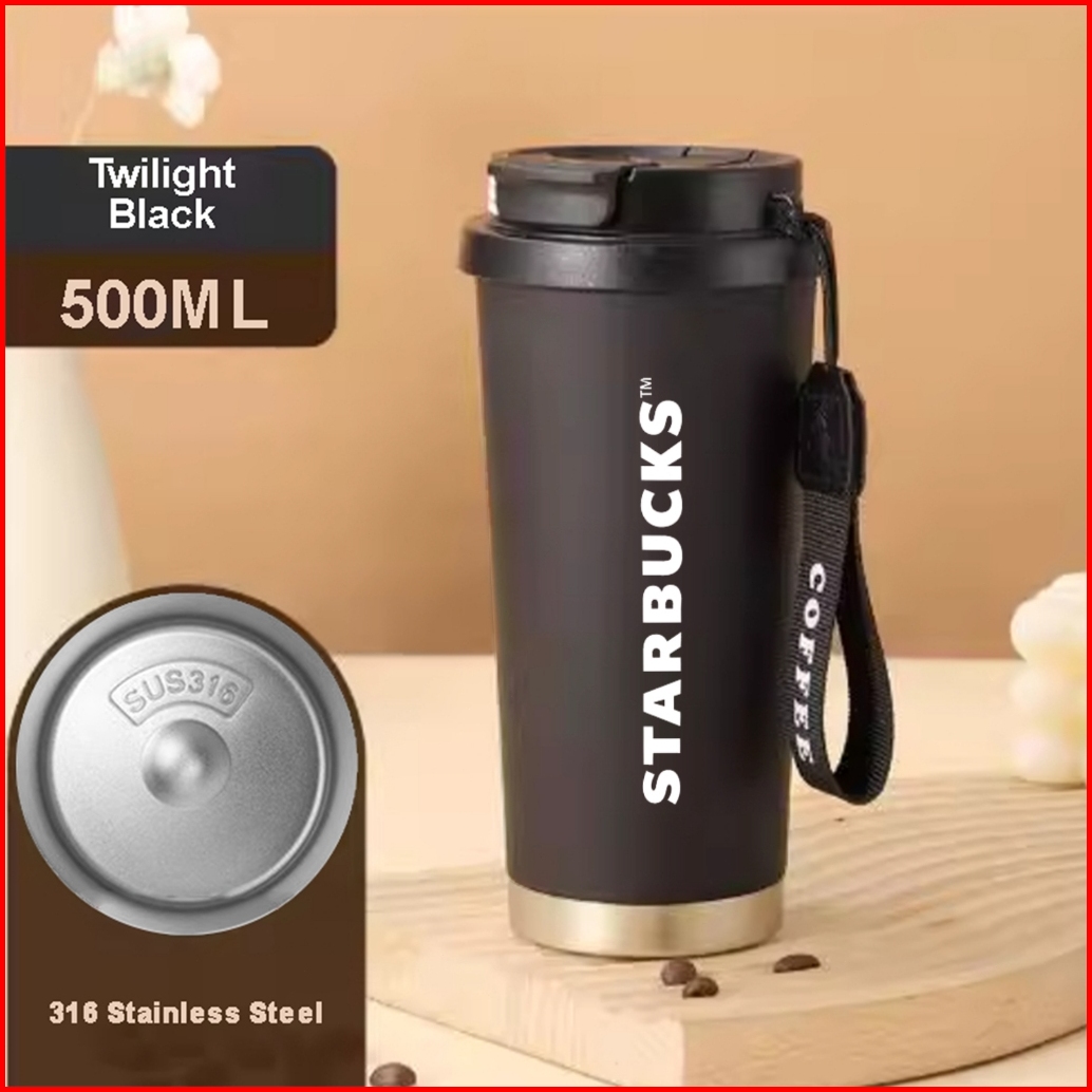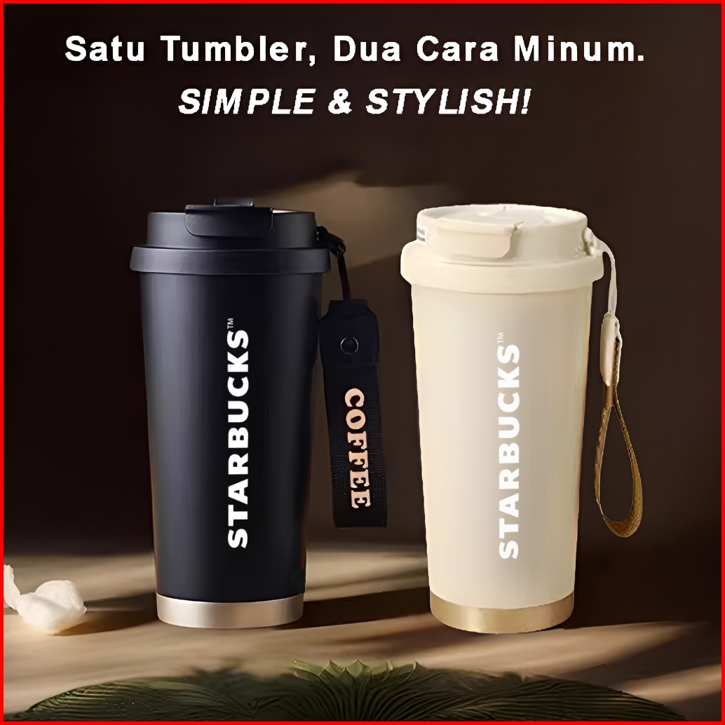 Tumbler Starbucks 2in1 Stainless Steel 316 500ml Sedotan Portable Botol Minum Aesthetics
