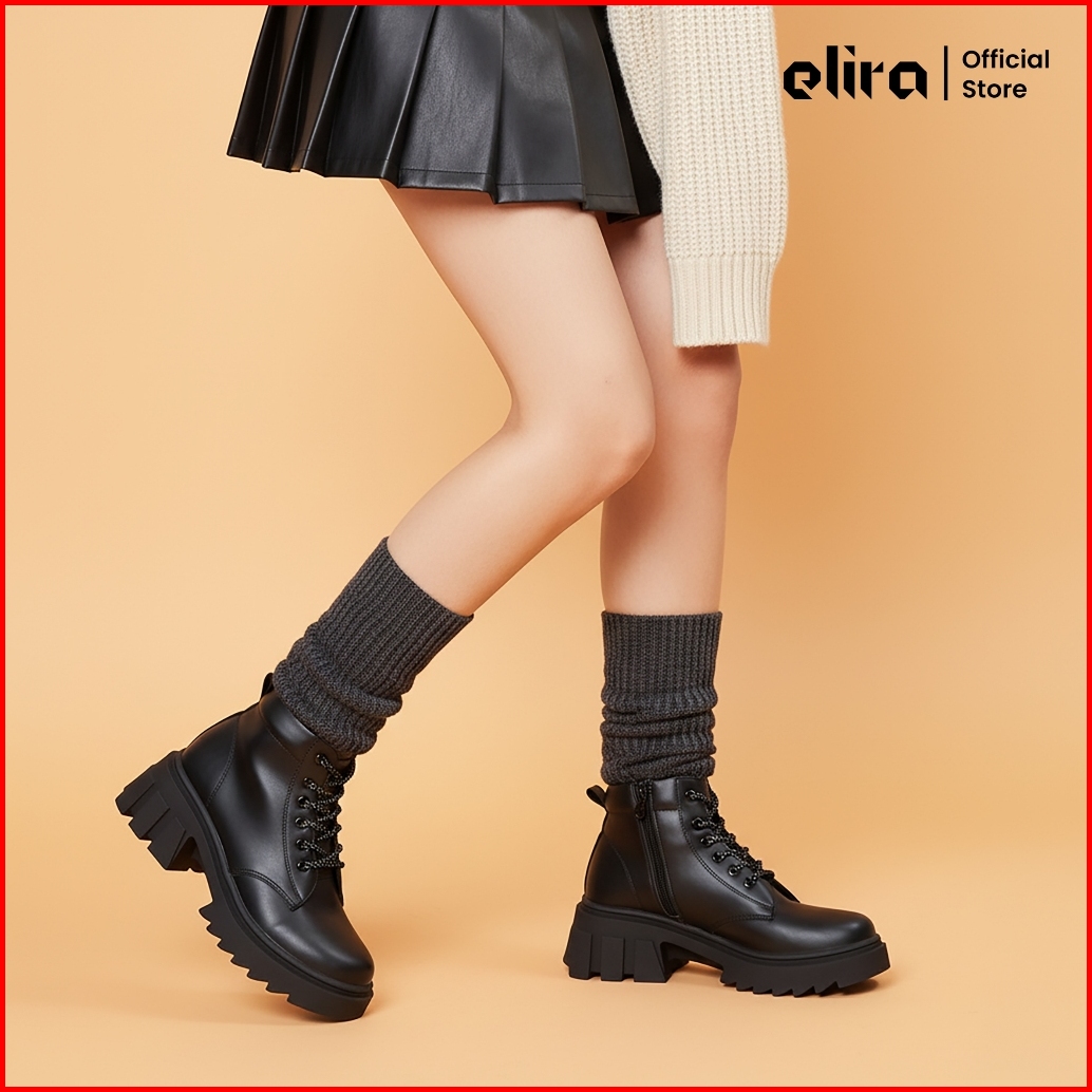 Elira Sepatu Ankle Boots Wanita Darcy Black Cream Platform Boots Women