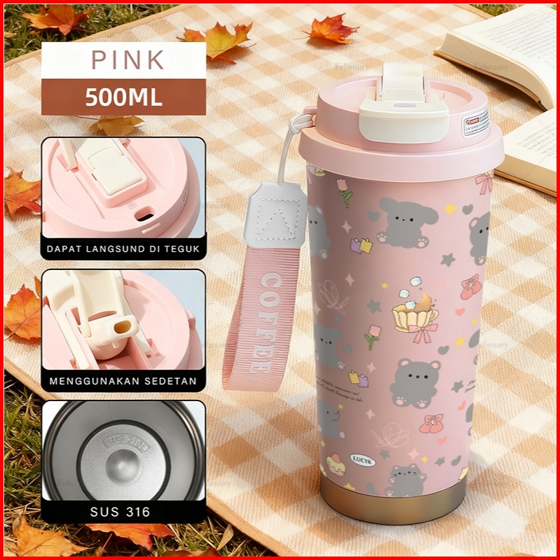 Tumbler Stainless 316 Sus 500ml Tumbler Aesthetic Viral Lucu Cangkir Kopi Tumbler Tahan Panas Dingin Botol Minum Tumbler