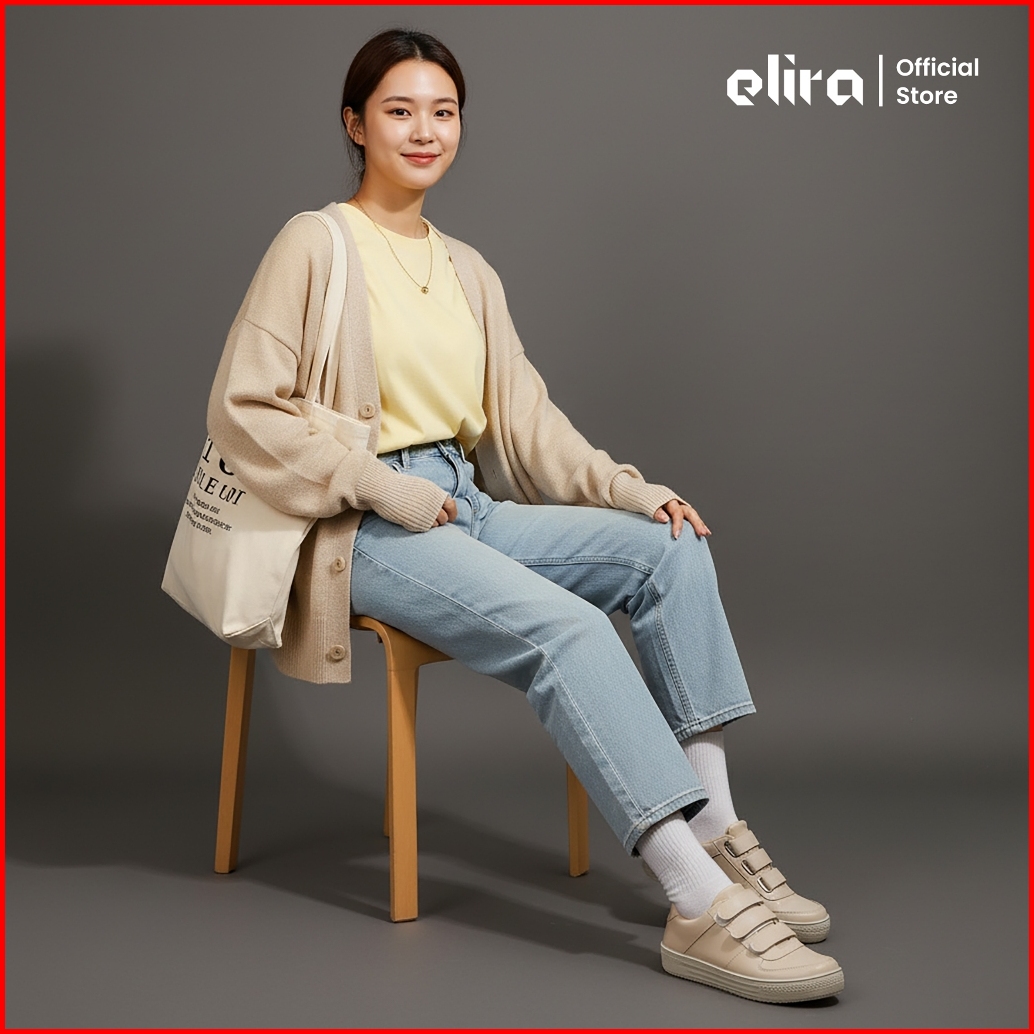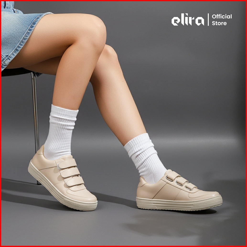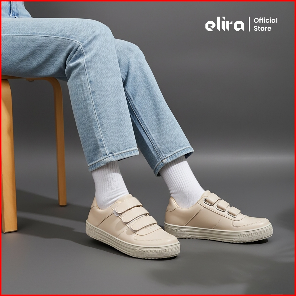 Elira Alice Cream Sepatu Perekat Sneakers Black Pink White Strap Shoes Women