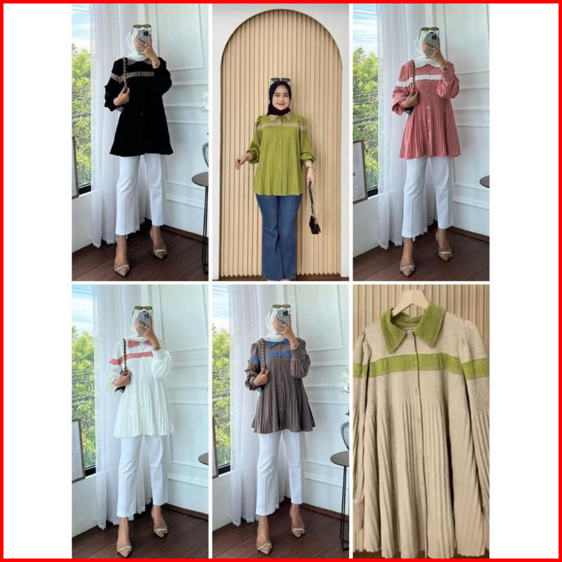 Hitam, Cokelat, Hitam kancing, Dusty Pink kancing, Denim kancing, Taupe kancing, Gren, Putih bw mix pich, Kemeja salur Denim, Kemeja salur birmud, Kemeja salur besar, Salur motip bunga, Salur motip bunga 02, Salur list besar 02, Salur motip bunga 03, Salur motip bunga 04