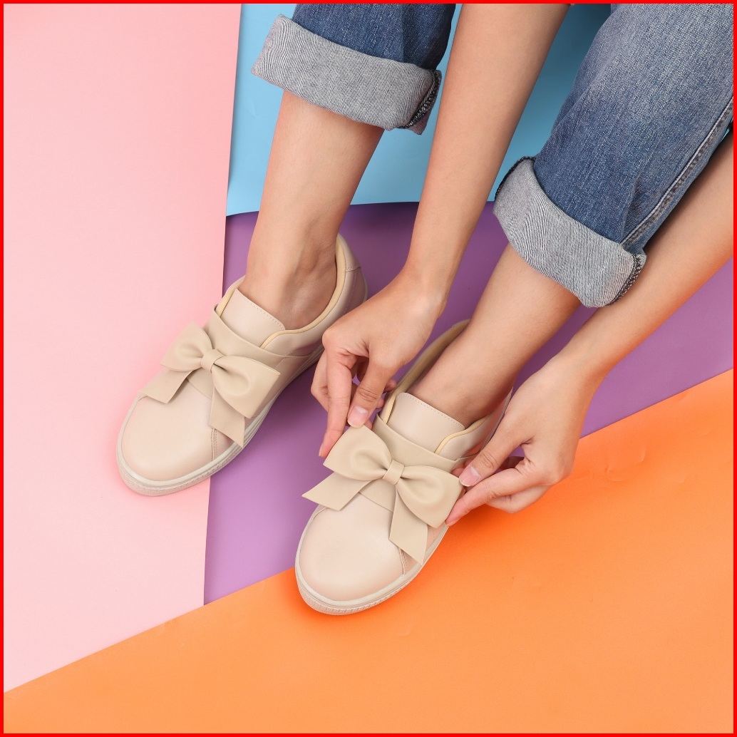 Elira Cassy - Sepatu Slip On Wanita White Cream Black