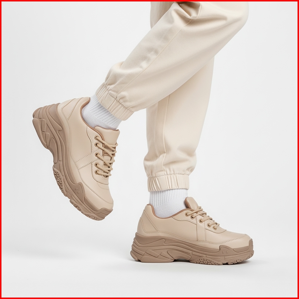 Elira Dustin Cream Sepatu Chunky Sneakers Wanita White Black Platform Shoes Women
