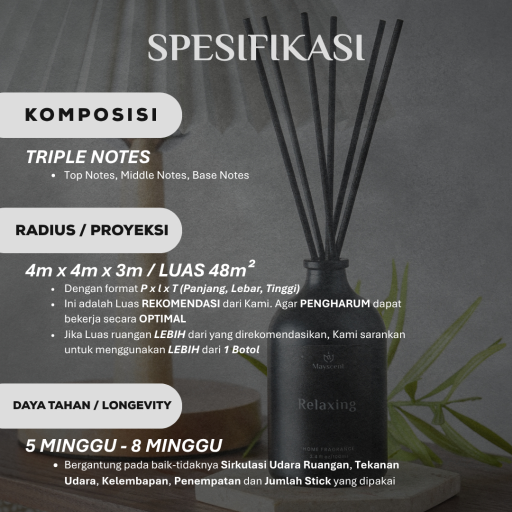 MAYSCENT Reed Diffuser 100ml - PENGHARUM, PEWANGI, AROMATERAPI, DEKORASI RBiayaAN & KAMAR PREMIUM