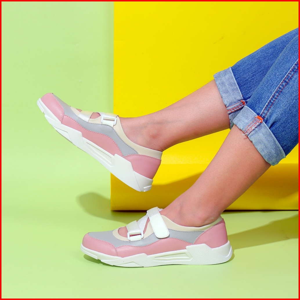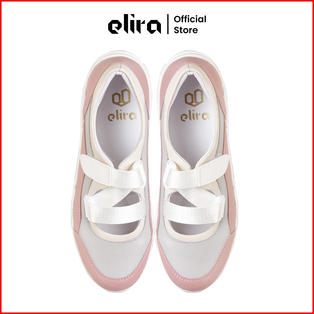 Elira Sepatu Perekat Sneakers Timi Pink Black Cream White Strap Shoes Women