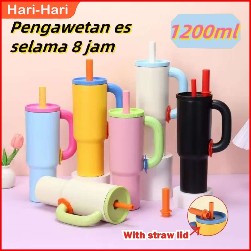 With Straw Lid Termos Tumbler Handle Jumbo Stainless Steel Vacuum Insulated 1200ml Sus 304 Tumbler Warna Tumbler Lucu Vi