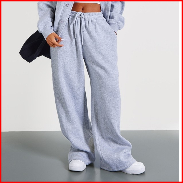 Spasmodic - Celana Sweatpants Loose Baggy Fleece Wanita Abu Misty