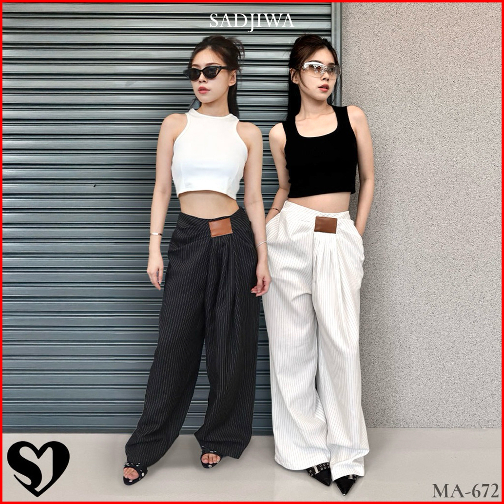 Celana Kulot Wanita High Waist Wide Leg Semiwool Kantor Casual Trendy - Sadjiwa