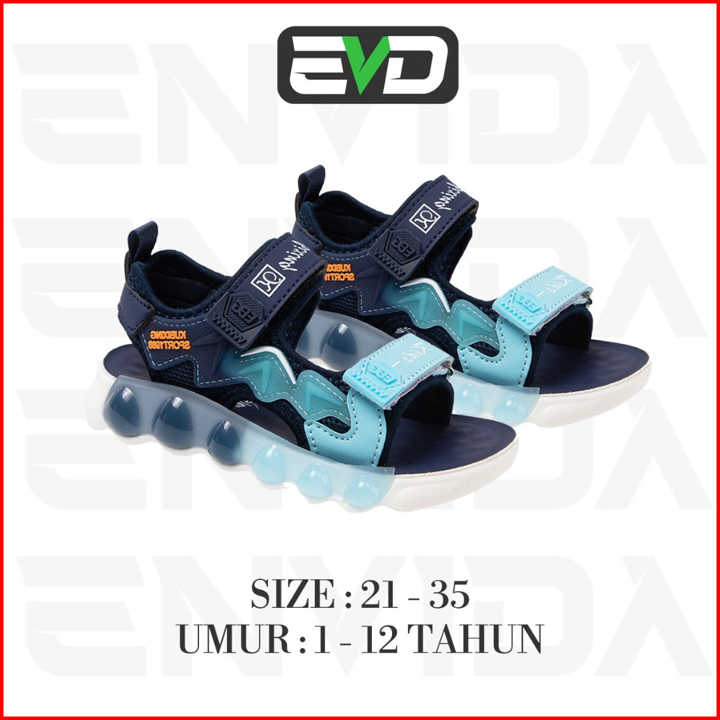 Evid - Sandal Anak Cowok Laki Laki Model Sandal Gunung Perekat Velkro Bahan Pvc Warna Biru Putih Hitam Ukuran 21 - 35 Um