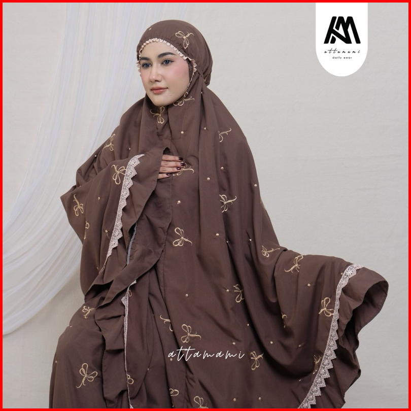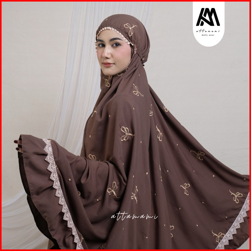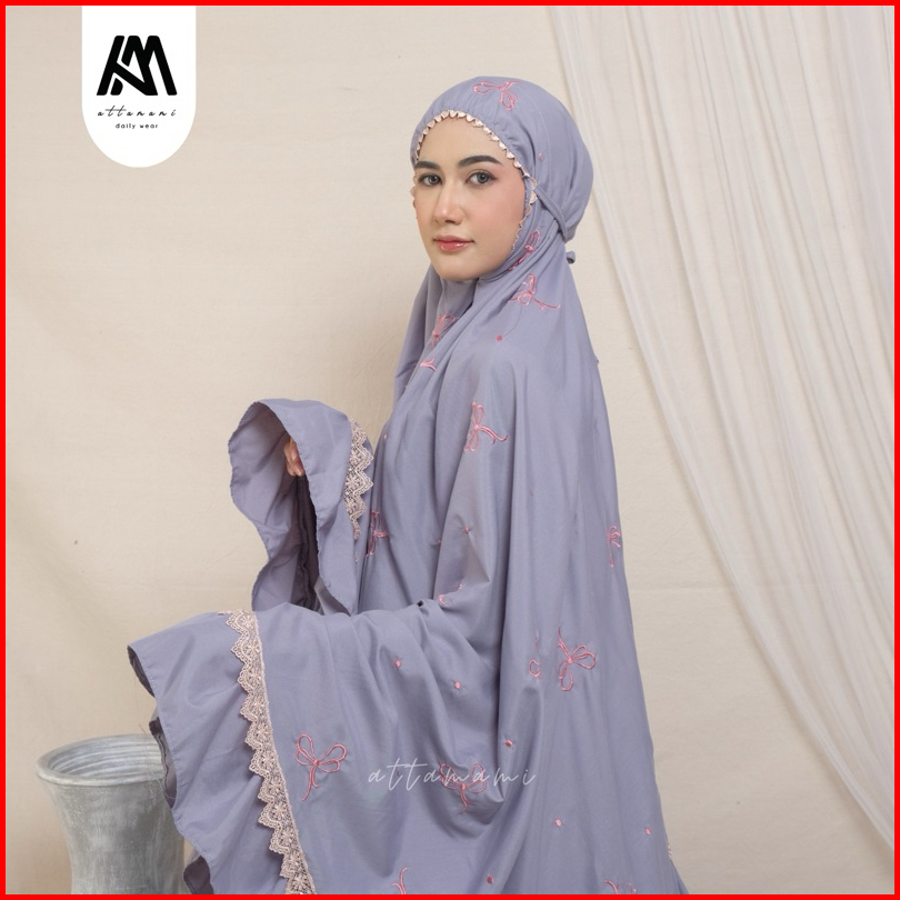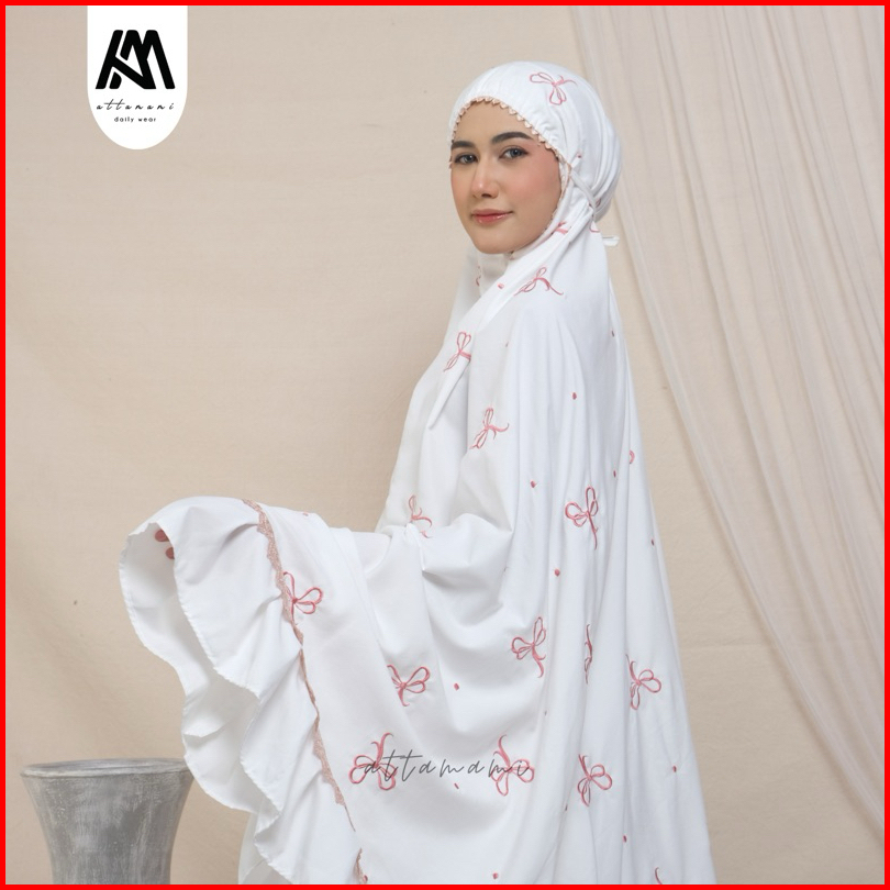 Mukena Dewasa Bordir Ribbon Coquette Bordir Pita Rempel Katun Premium