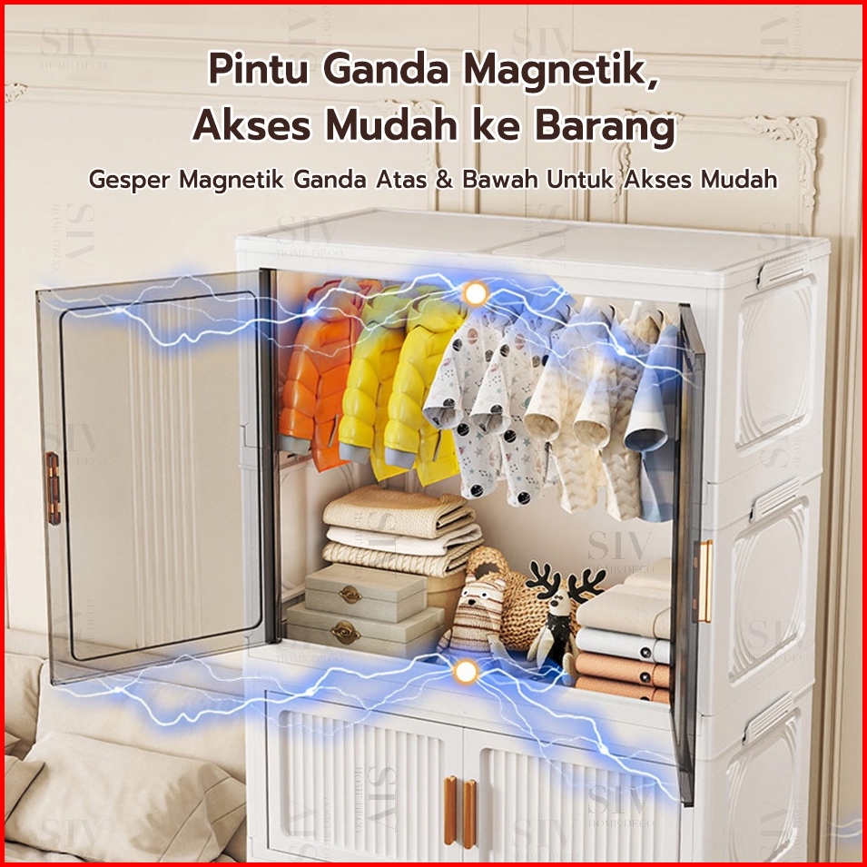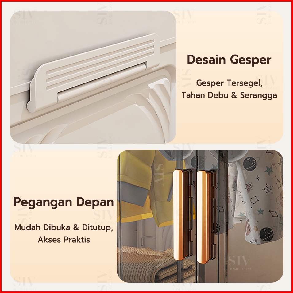 55-80cm Besarlyo Lemari Baju Bayi Anak Plastik Lemari Pakaian Estetik Minimalis Dengan Roda