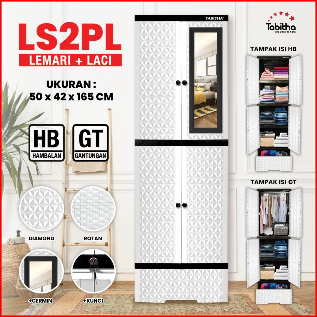 Tabitha Lemari Pakaian Plastik Dengan Laci Lemari 2 Pintu Serbaguna - Ls2pl Series