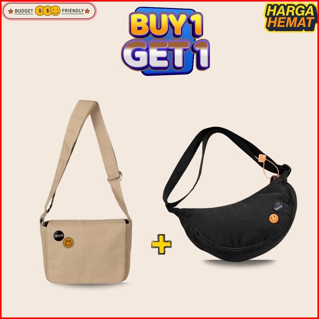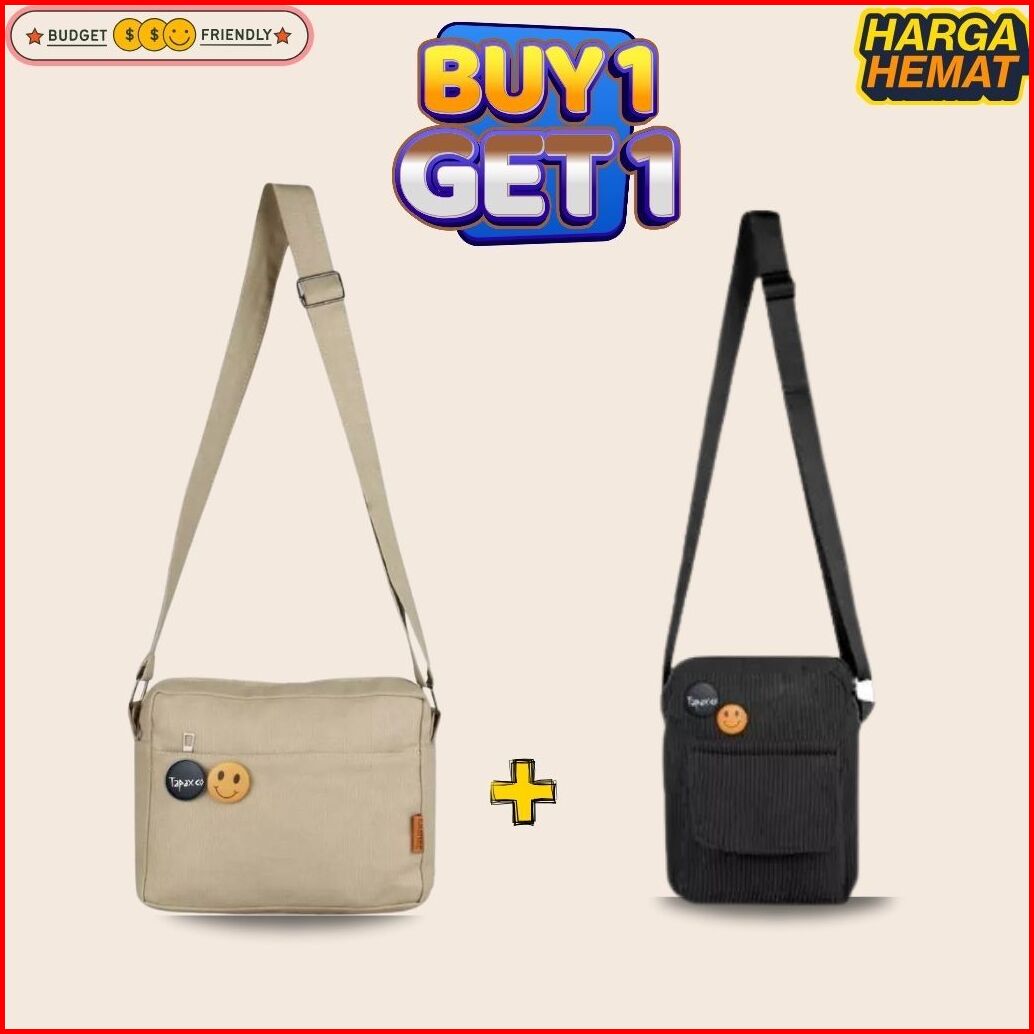 Tapaxco Beli 1 Dapat 2 Tas Selempang Slingbag Casual - Paket Canvas Corduroy Tapax