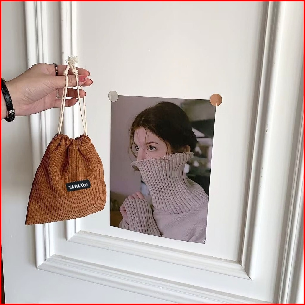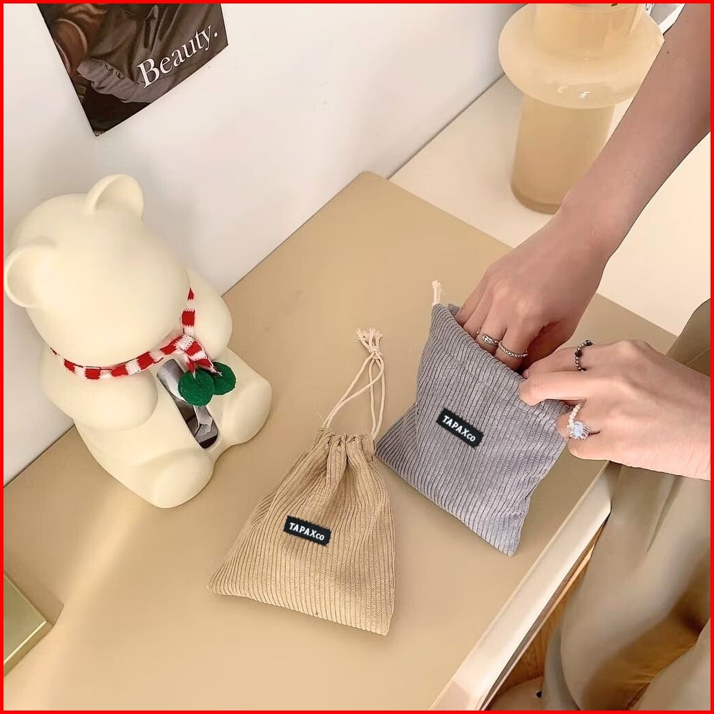 Tapaxco Pouch Serut Mini Seline Corduroy Small Aksesoris Tas Tote Rope Kosmetik Travel Multifungsi