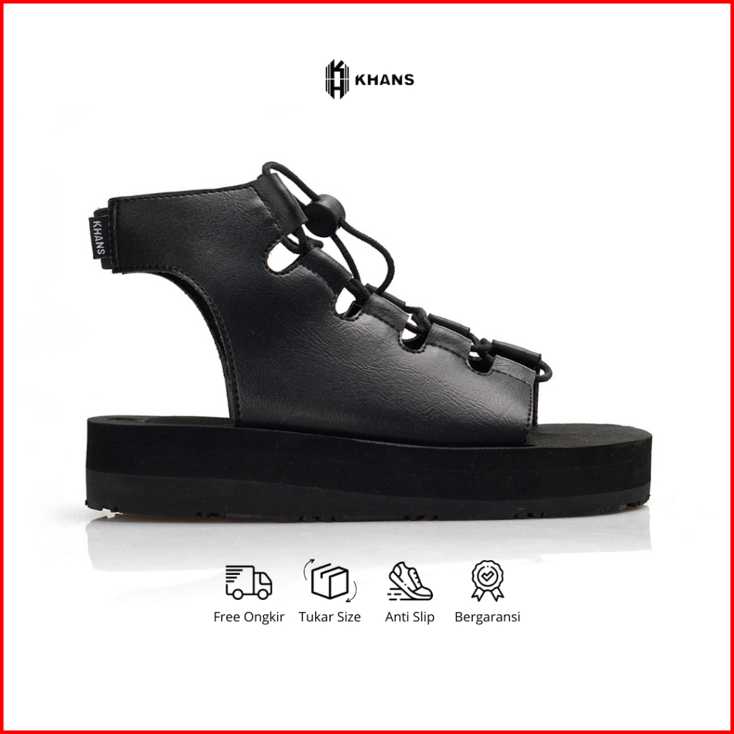 Khans - Sandal Platform Wedges Wanita - Yeji Black