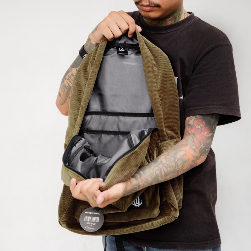 When Evil - Tas Ransel Corduroy Minimalis Luas