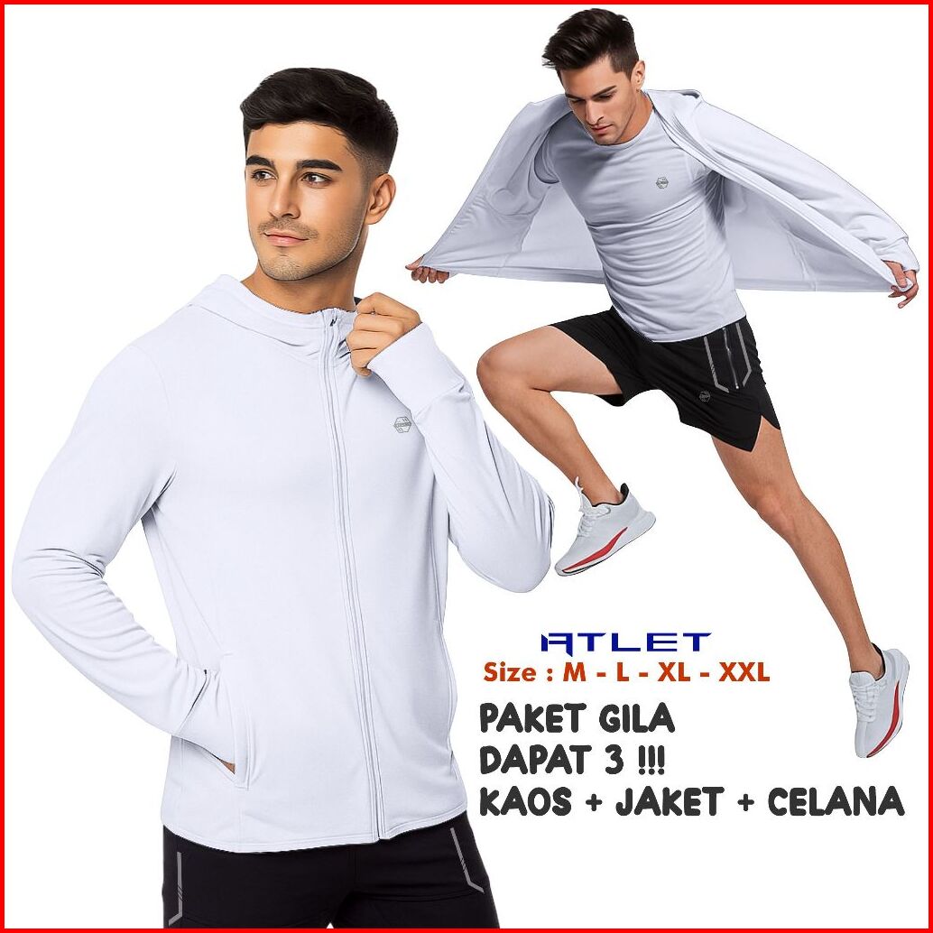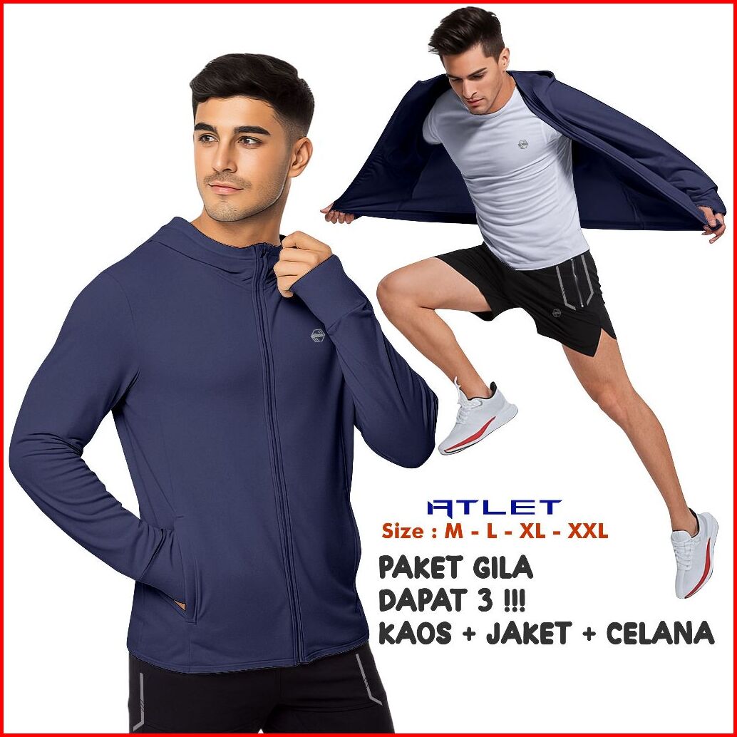 Paket Stelan 3 In 1 Jaket Dryfit Celana Pendek Premium Kaos Olahraga