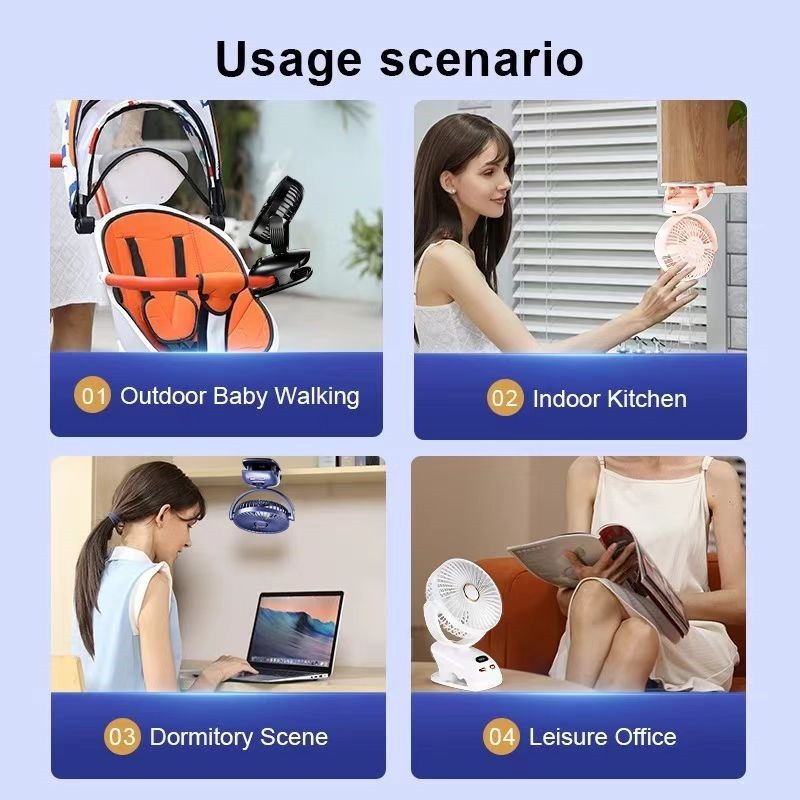 Kipas angin meja kapasitas besar 15000mAh Kipas Angin USB Clip Mini Fan Rotating Jepit Portable LED Display cocok untuk dikantor dan kamar