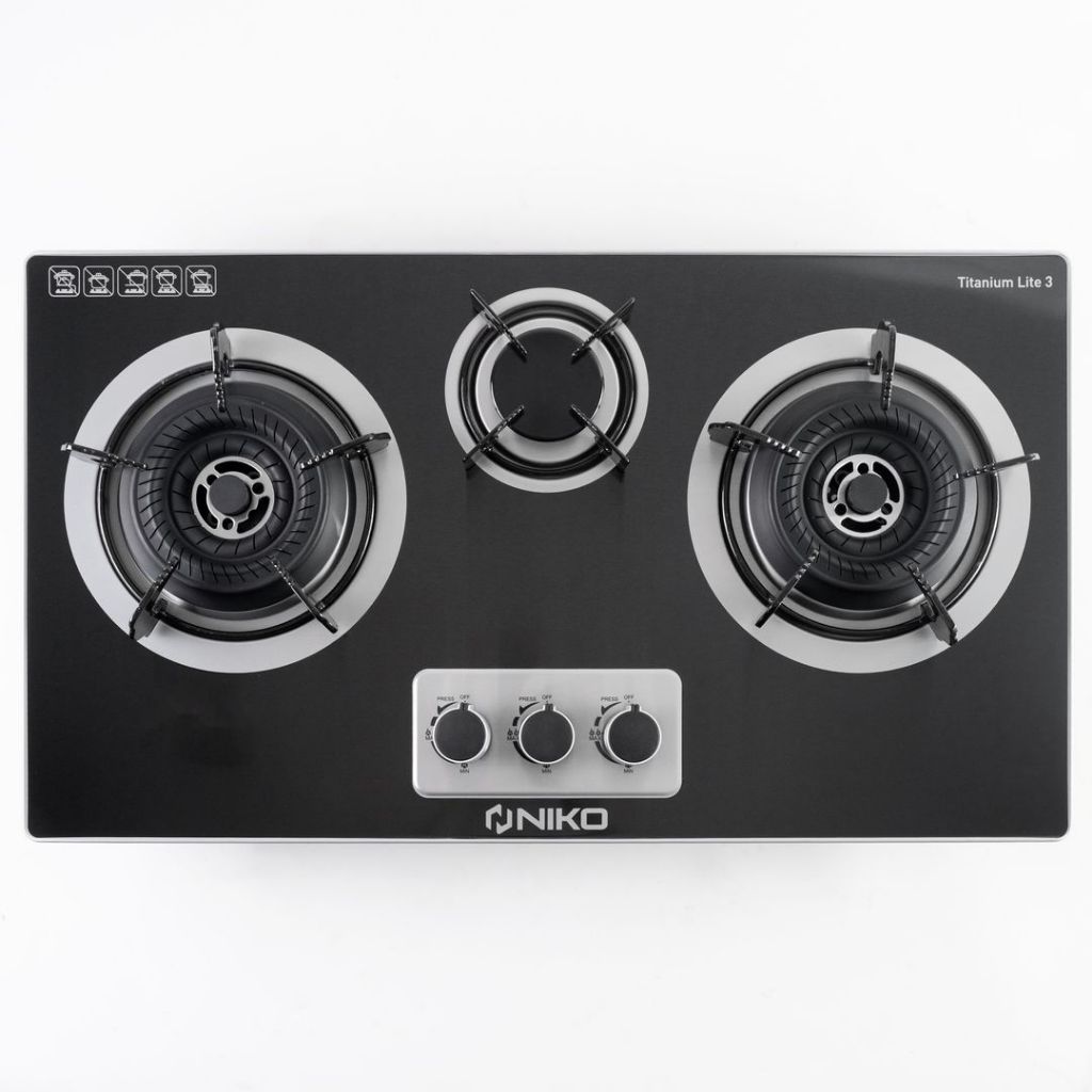 Niko Titanium Lite Kompor Gas / Kompor Tanam Kaca 3 Tungku Stainless Steel Api Biru - FREE ONGKIR