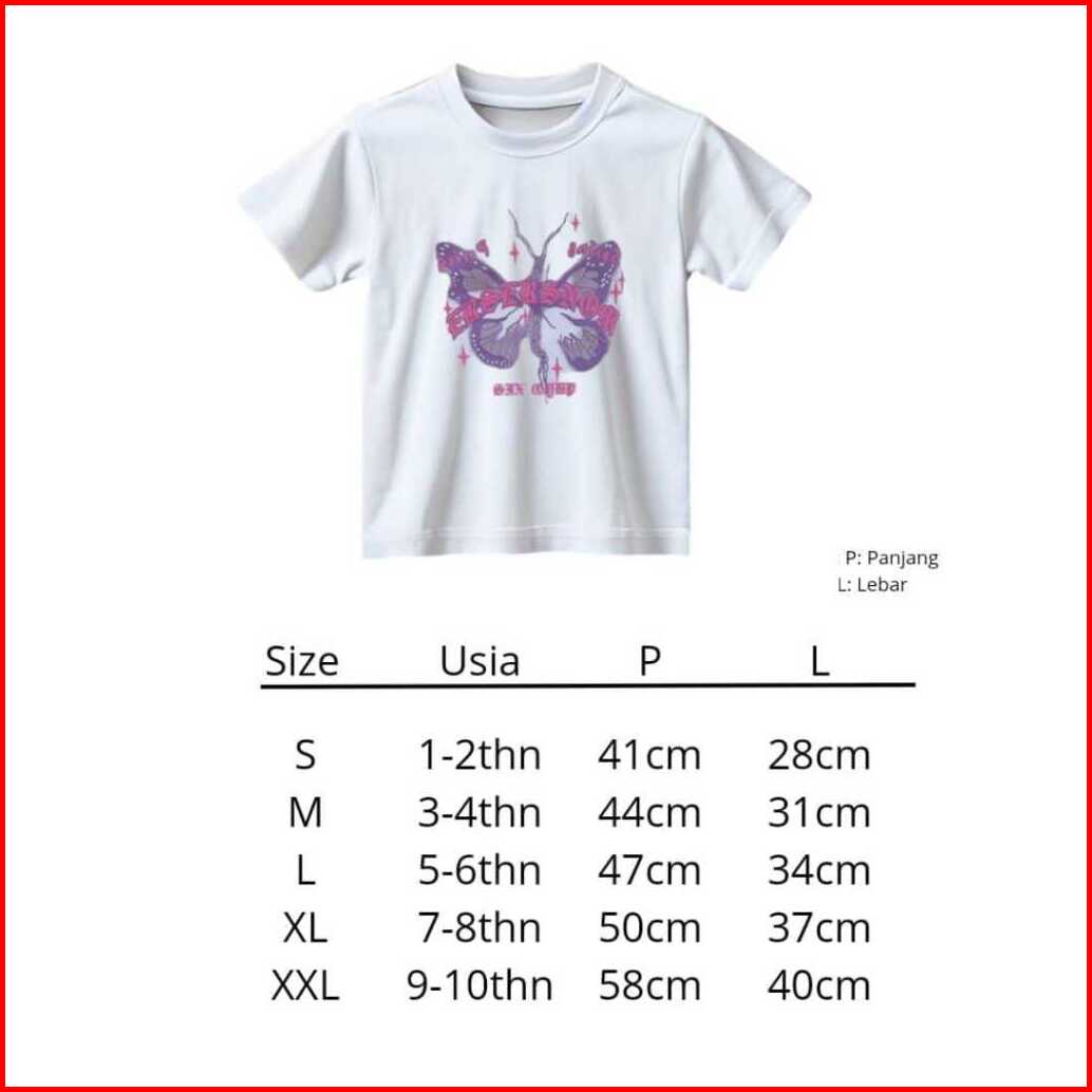 Follux - Kaos Anak Perempuan Butterfly Matt Cotton Combed 30s 1-8 Tahun