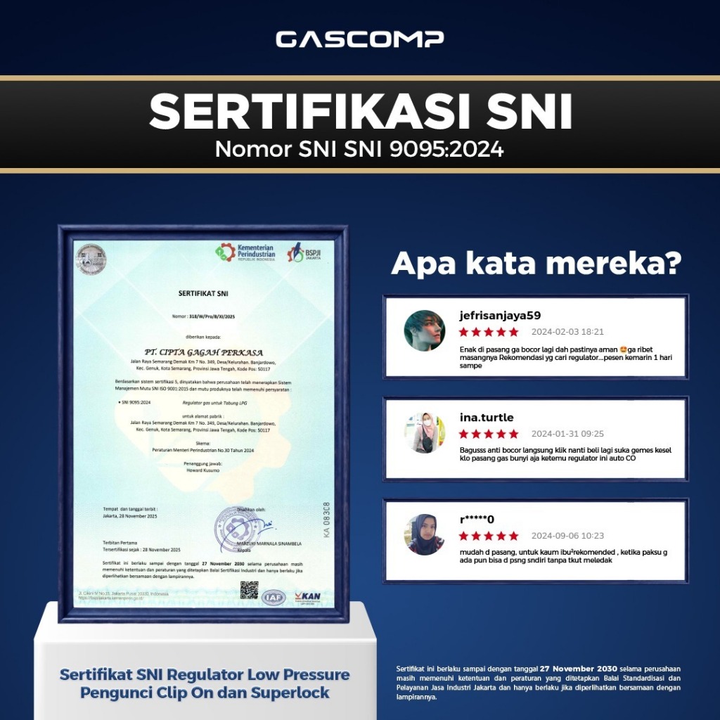 GASCOMP Regulator Meter Superlock 01 Klik GRS-01 Regulator Gas Aman Regulator Gas Anti Bocor Regulator Gas SNI Regulator