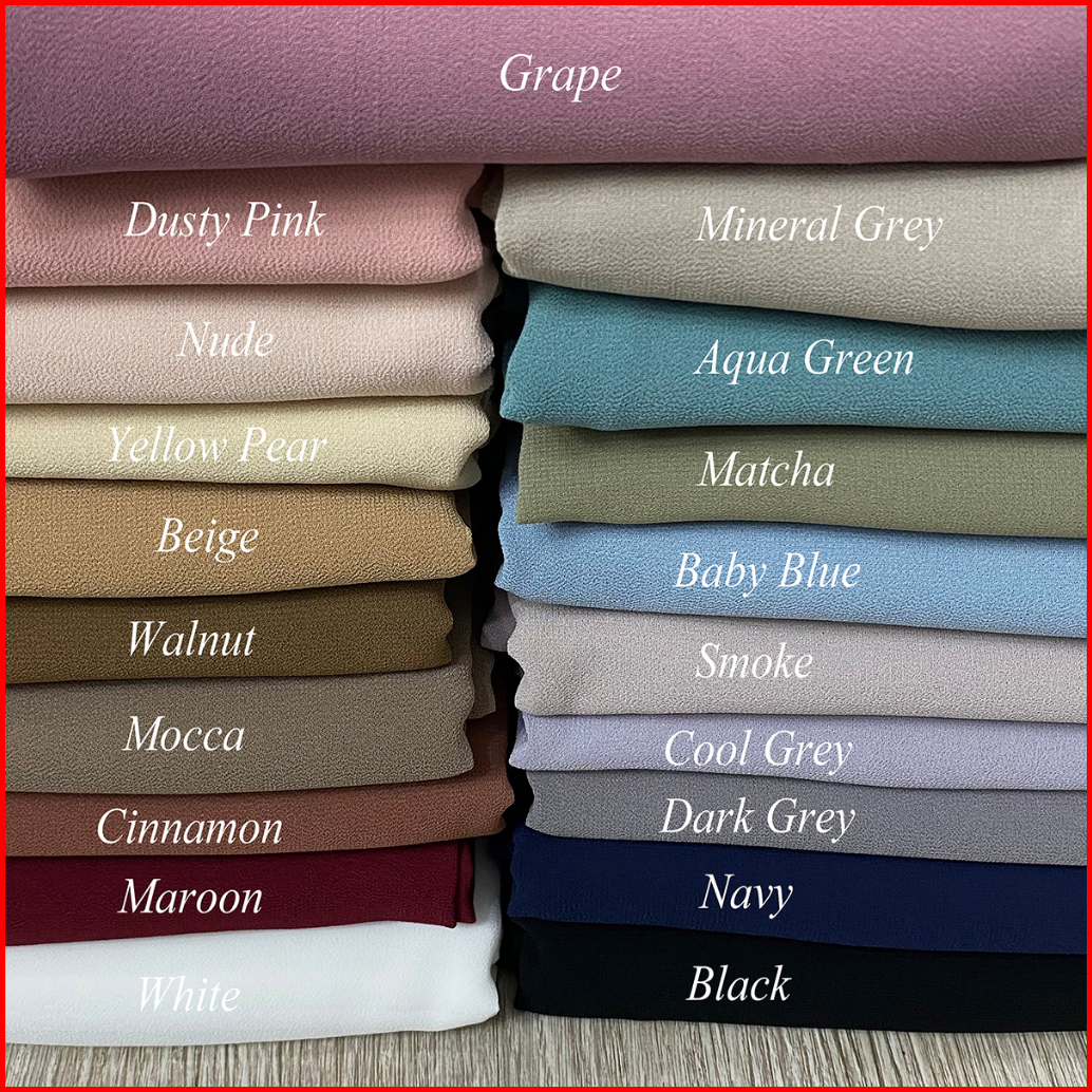 Black, Navy, Maroon, Cinnamon, Sage, Smoke, Grape Mist, Cool Grey, Aqua Green, Dusty Pink, Mocca, Dark Grey, Nude, Grape, Lavender, Mineral Grey, Baby Blue, Pear, White, Matcha, Walnut, Beige, Olive, Denim, Pulm Purple, Rose, Latte, Deep Green, Pastel, Cacao, Nutella, Deep Olive