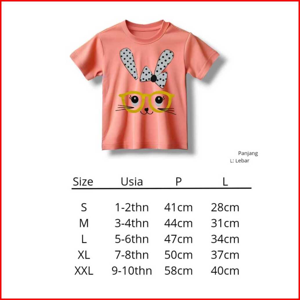 Follux- Kaos Anak Motif Rabbit Salem 1-8 Tahun Bahan Katun Combad 30s Premium