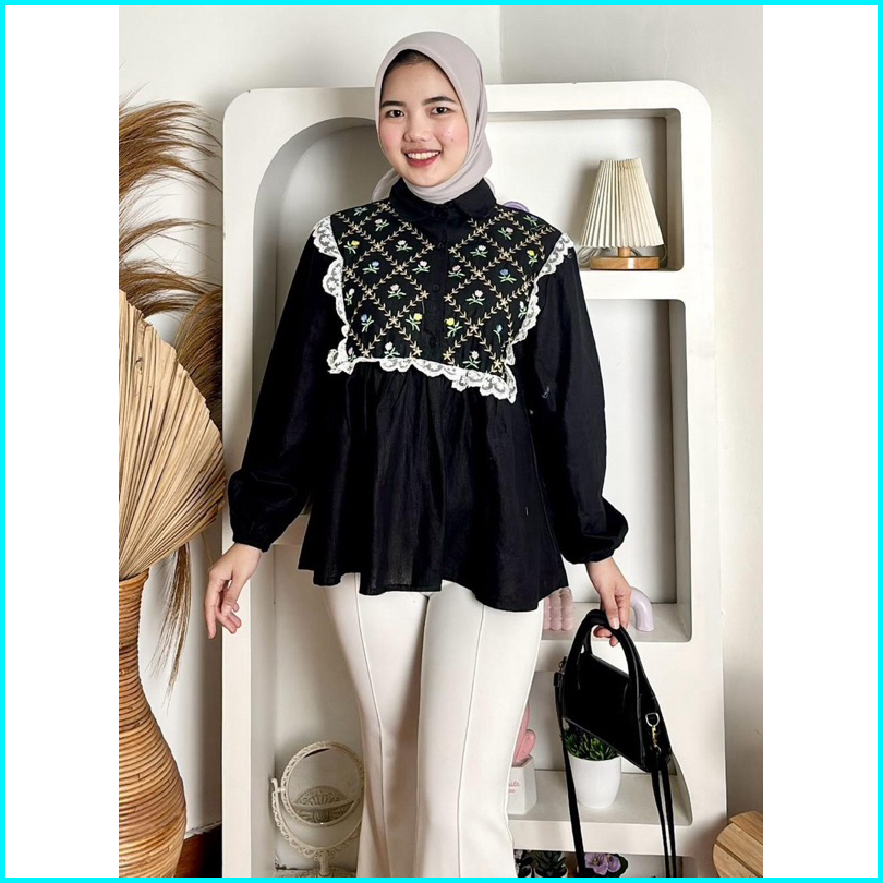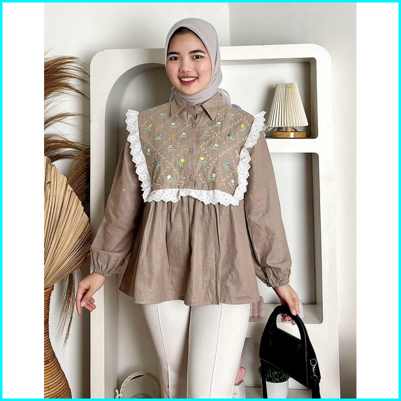 Girlfashionstory Original Ghenia Linen Embroidery Kemeja Bordir