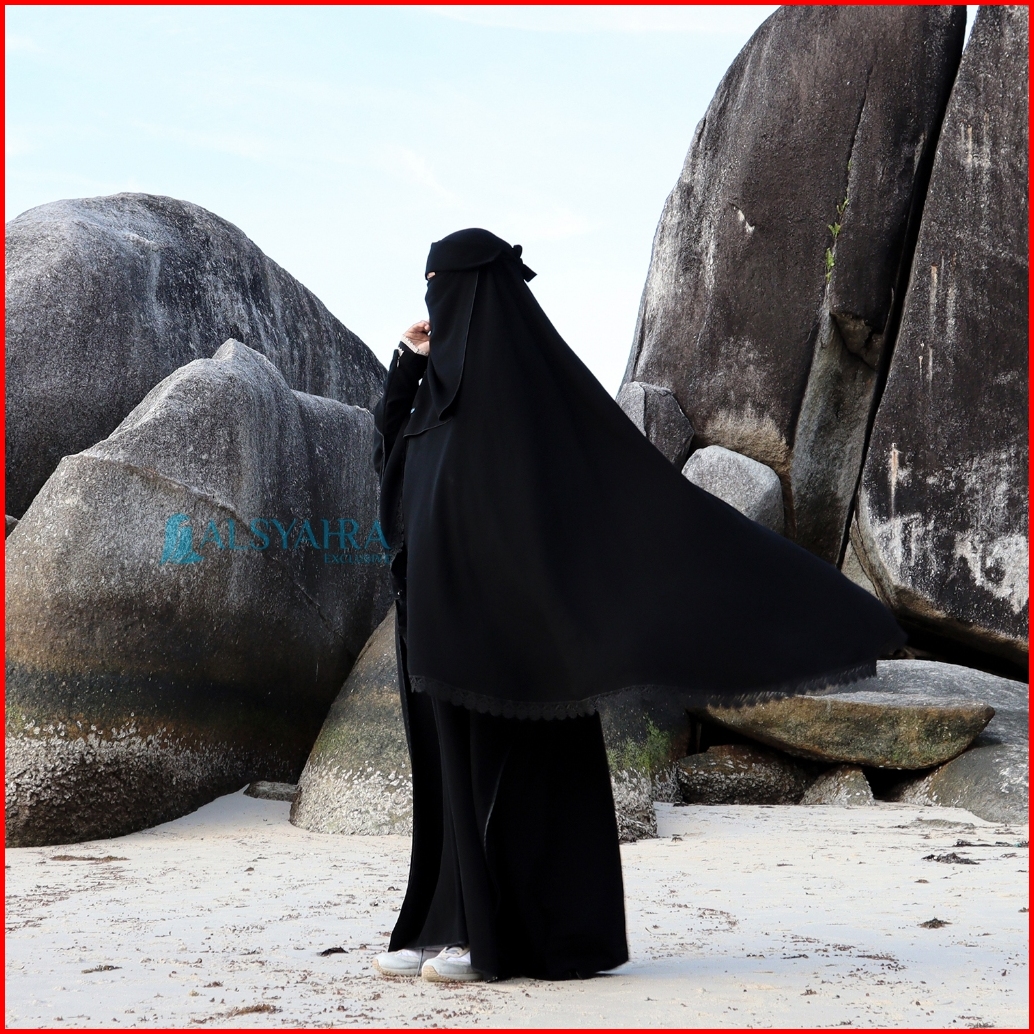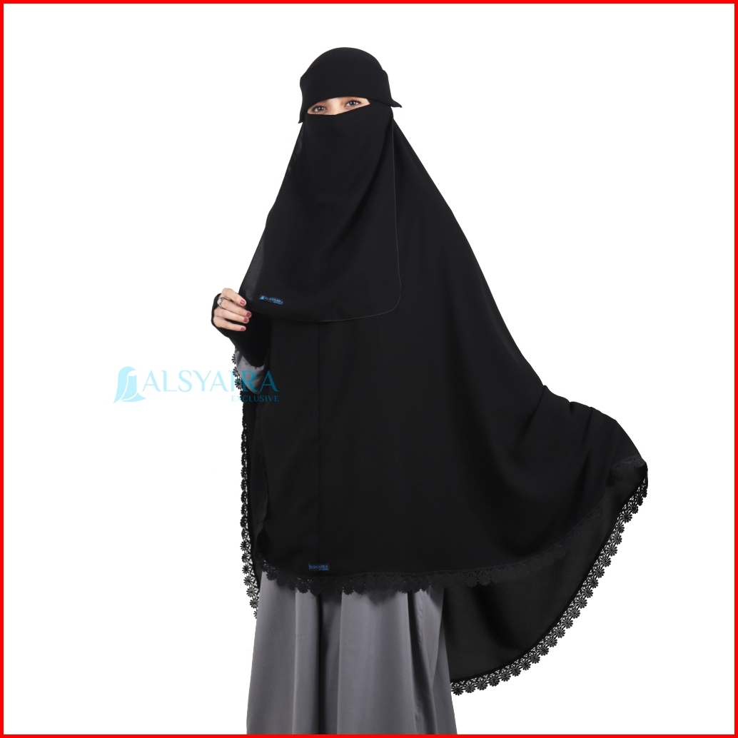 Alsyahra Exclusive - Set Khimar Syari Al Shams Niqab Poni Jetblack