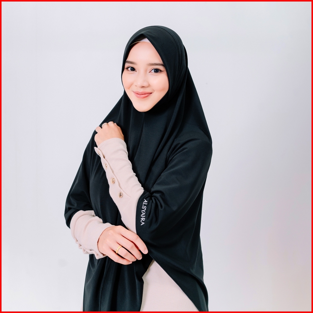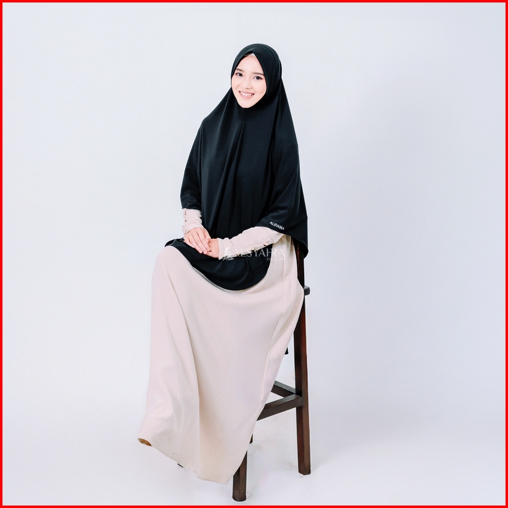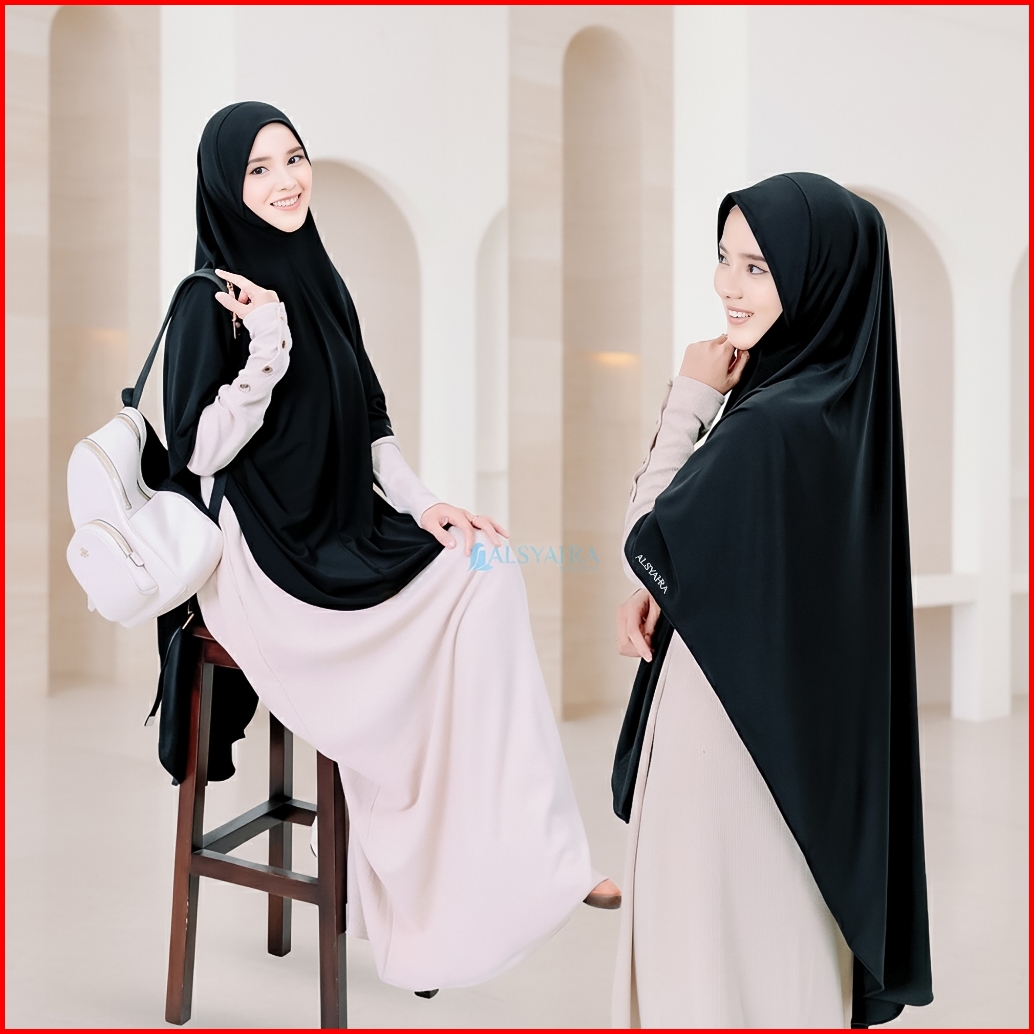 Alsyahra Exclusive - Khimar Bergo Syari Azzahira Nutup Dagu Premium Queen Black Size Xl