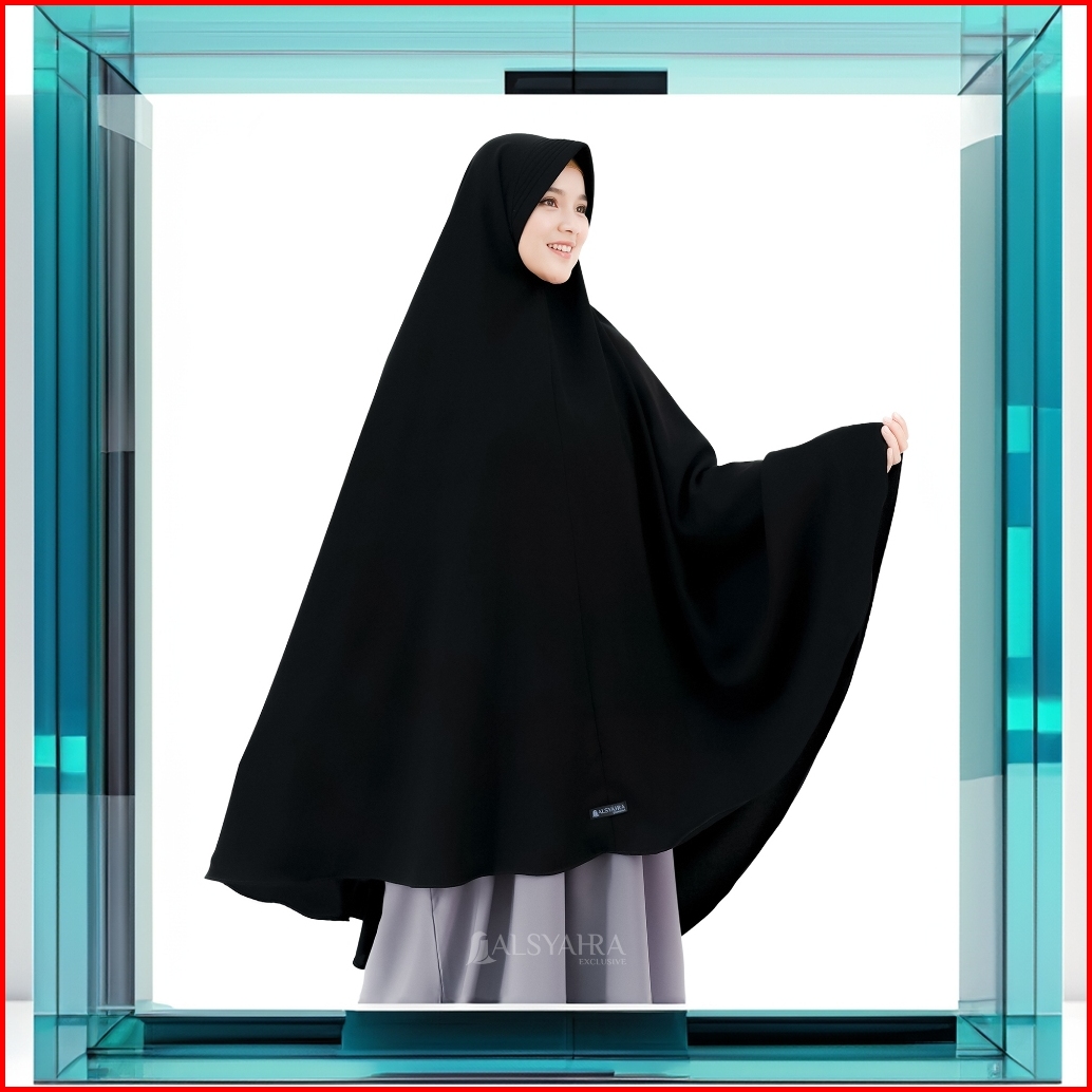 Alsyahra Exclusive - Set Khimar Syari Marwah Pad Cadar Tali Jetblack Size Xxl