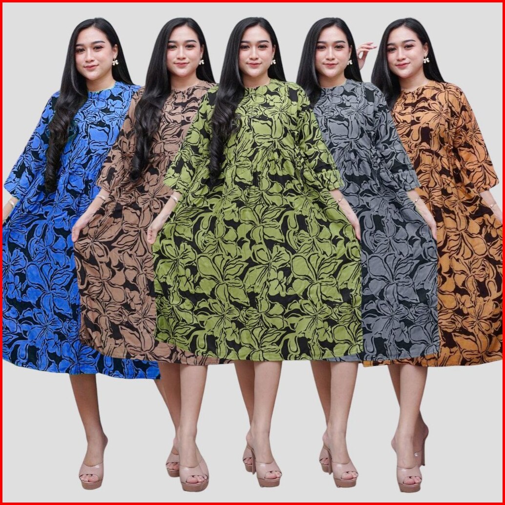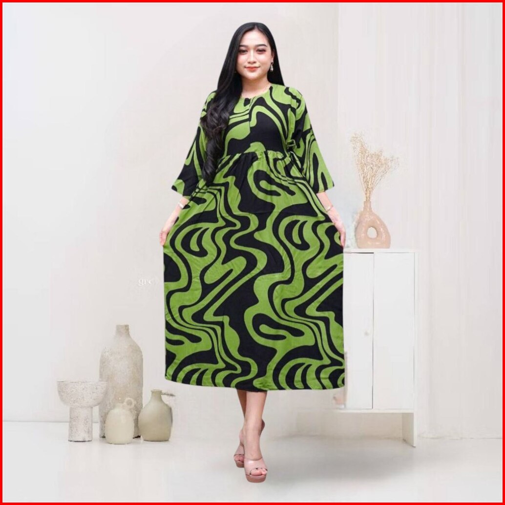 Prass - Daster Lengan 3 4 Busui Resleting Depan Motif Etnik Rayon Premium Ld110 Daster Cibi
