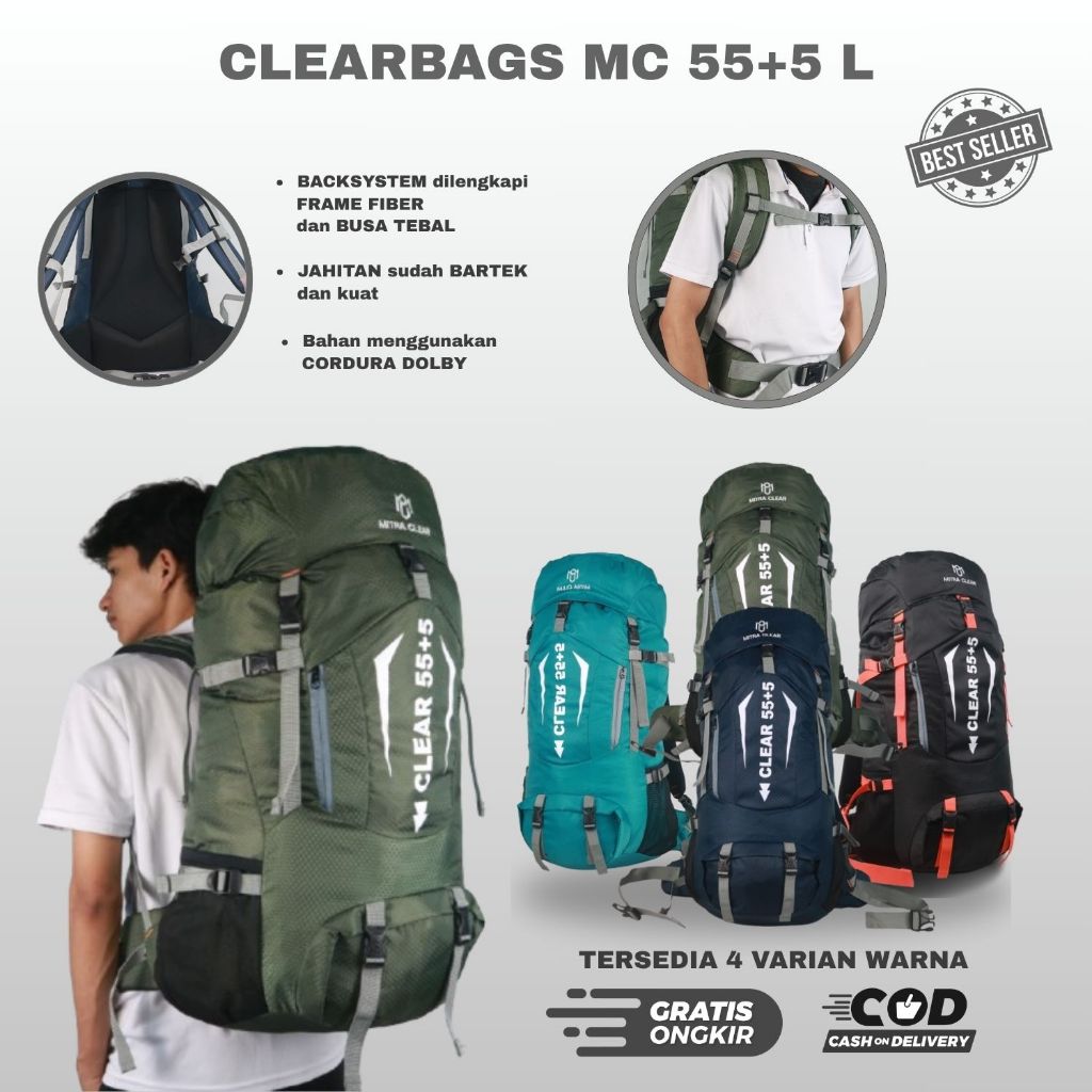 CLEARBAGS Tas ORI Ransel Gunung Mitra Clear 55+5 Liter Keril Hiking Camping Travel Outdoor Pria