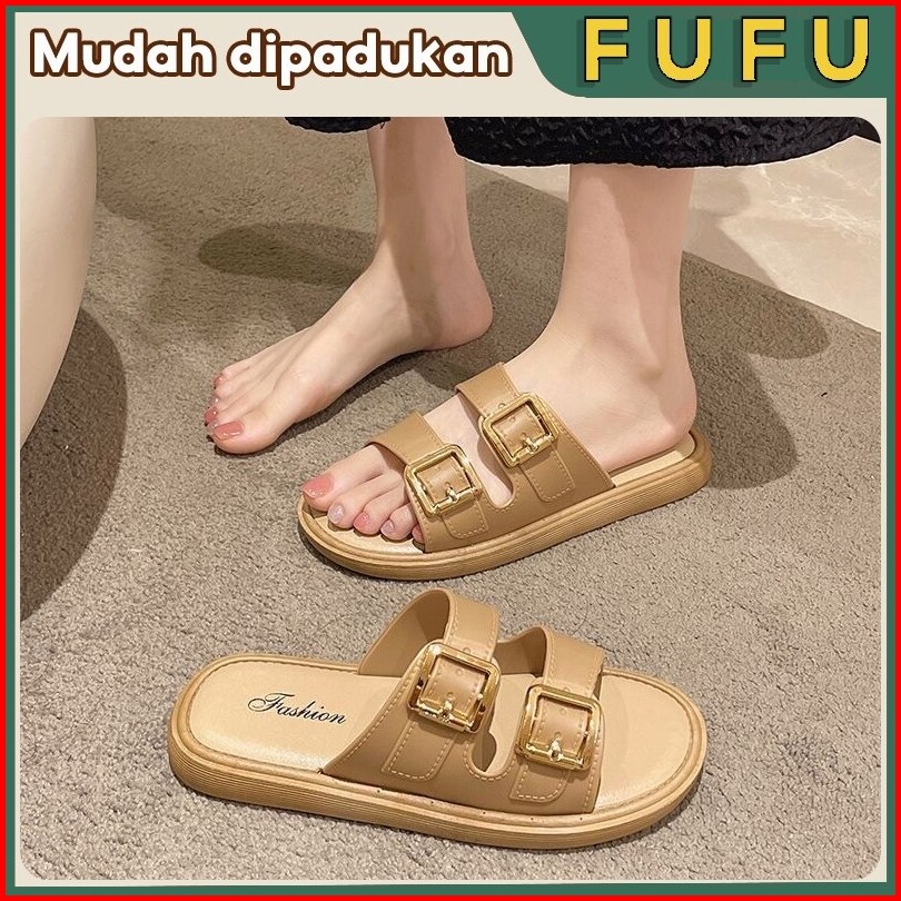 Fufu Sandal Wanita Kekinian Sandal Wanita Korean Style Sandal Selop Wanita Sandal Gesper Sabuk Sol Tebal Retro Sandal Te