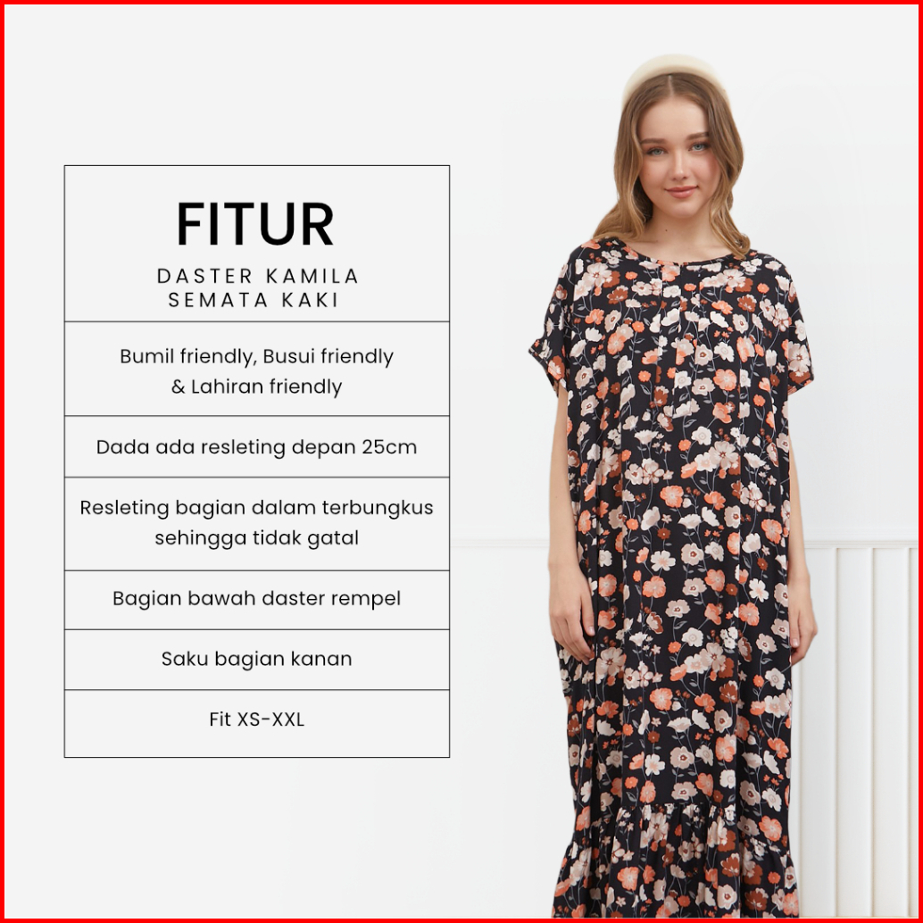 Dyd Label Kamila Sematakaki Daster Wanita Bahan Rayon Front Zipper Bumil Busui Friendly All Size Up To 90kg